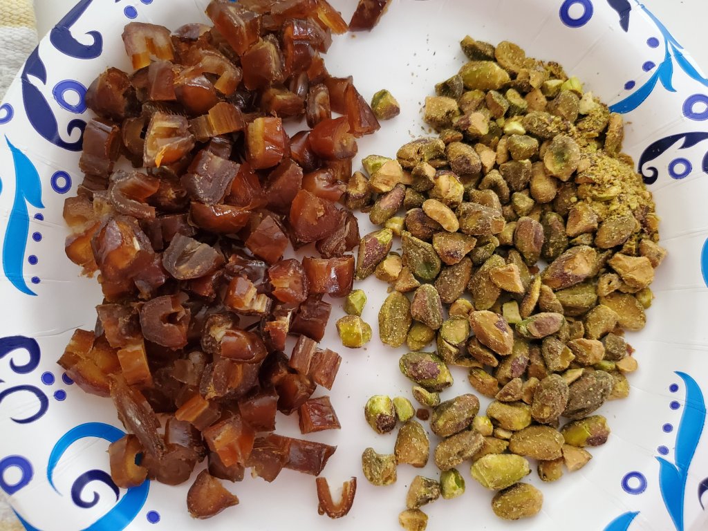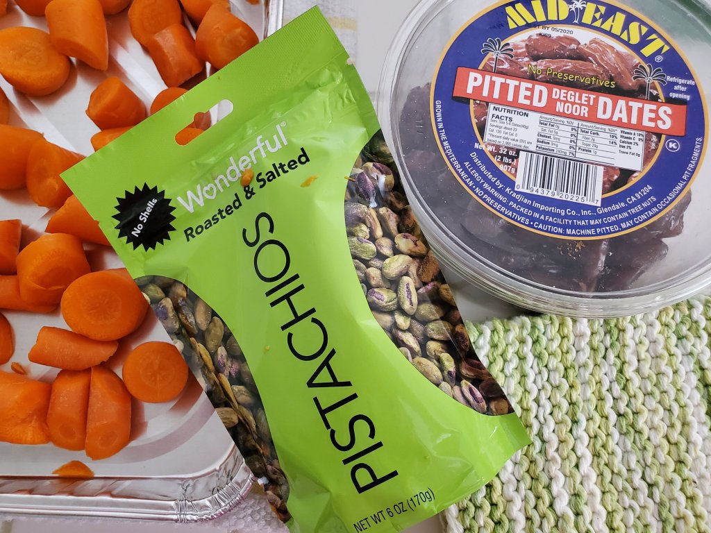 - Remove the carrots from the oven and place on a serving dish. Top with prepared dates and pistachios. Serve hot from the oven or at room temperature.
