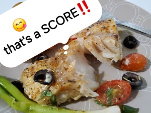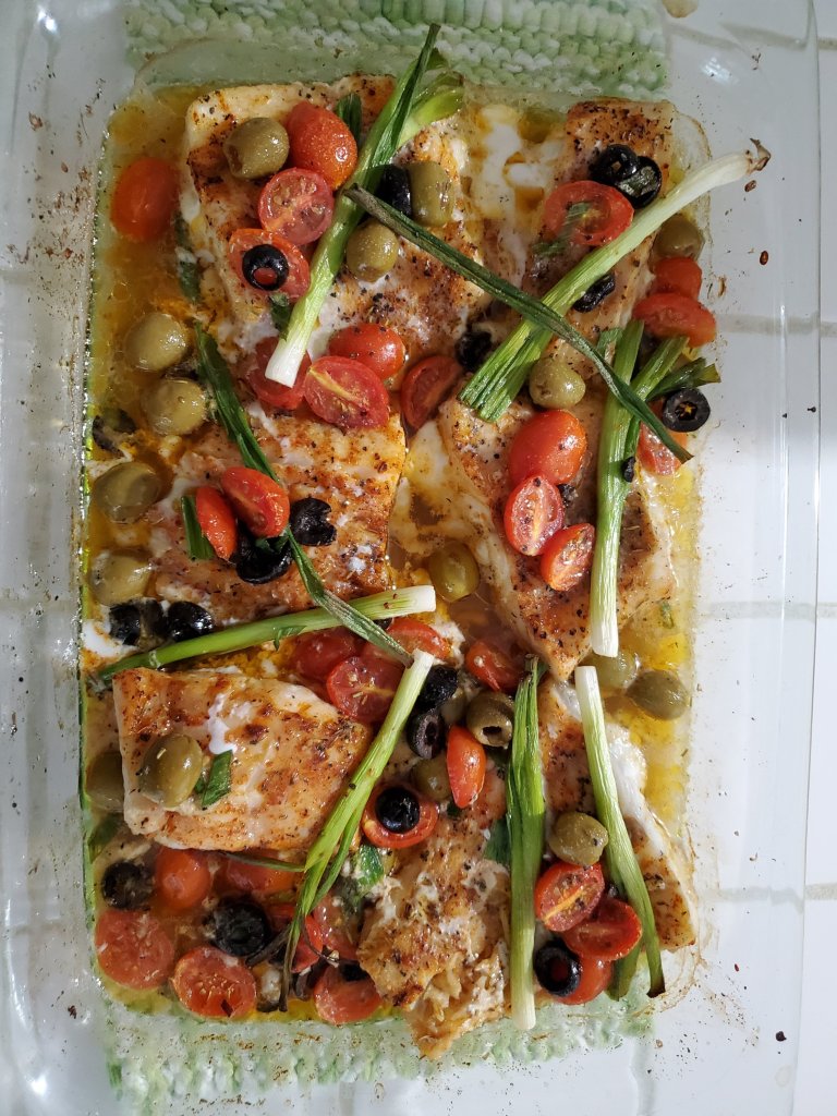 - Bake for about 30 minutes, depending on the thickness of the cod. It is done when the fish easily flakes by touching it with a fork.