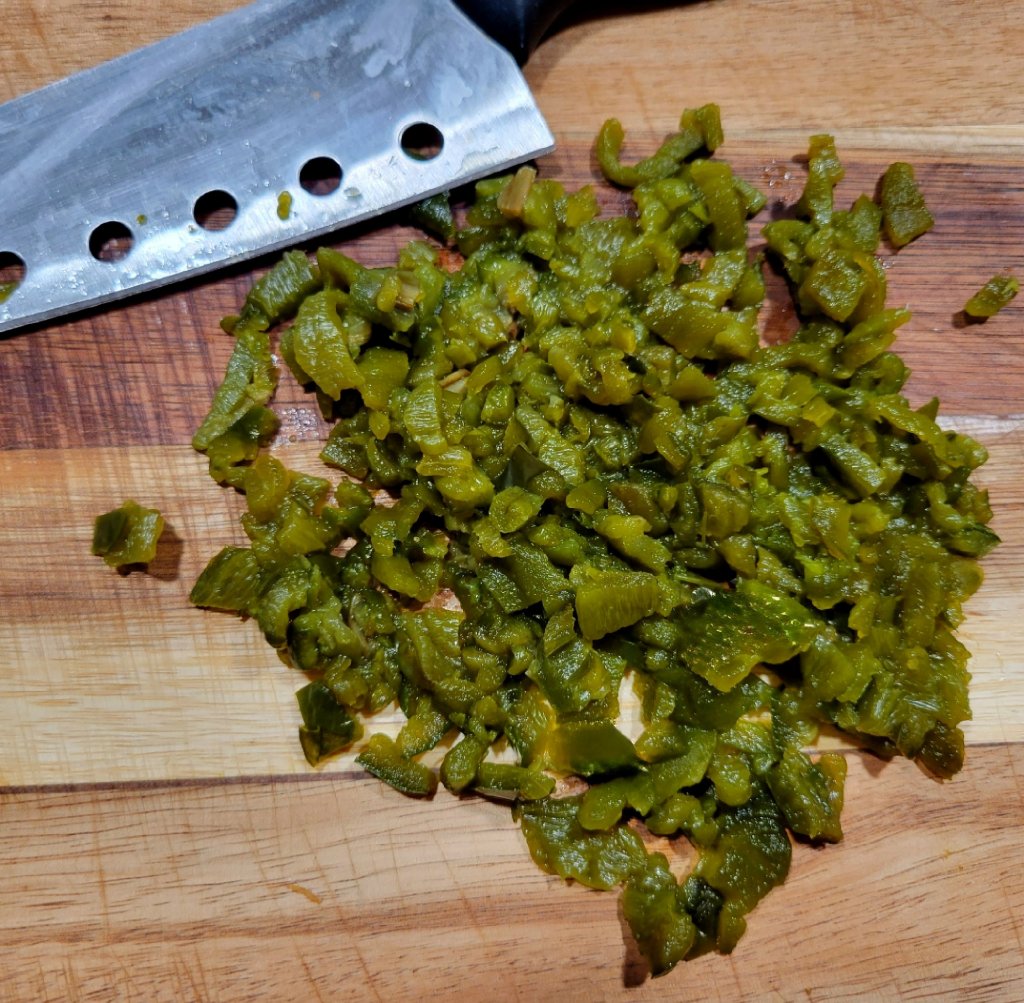 We use flour tortillas for this. 2 large cooked chicken breasts or rotisserie chicken, shredded. 2 cans of cream of chicken & (or mushroom soup; I prefer the chicken), 1 cup sour cream, can of chopped/diced green chile (I used 3 large chile, roasted, peeled & chopped), seasoning ➡️ either taco seasoning, chili powder or make your own seasoning with chili powder, garlic powder, cumin, oregano, salt & pepper to taste. I don’t measure 🤭 I’d guess a couple tablespoons of chili powder or taco seasoning; or 1 tbs chili powder, 1 tsp garlic powder, 1 tsp cumin, 1 tsp oregano, 1 tsp salt & 1/4 tsp of pepper 🌶 taste it & adjust if needed. For heat 🔥 a dash of cayenne 🤪 or crushed red pepper flakes.