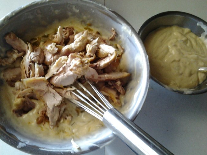 I set bowl of shredded chicken aside; in another bowl I mix all other ingredients. Then add mix to chicken & mix well; add just enough to hold chicken together & save remaining mix for top of enchiladas. Smear a little of mixture on bottom of pan. Put a good scoop of chicken/chile mix on flour tortilla, top with cheese (your favorite, colby jack, cheddar, quesadilla cheese, etc) roll up & place seam side down in baking dish, repeat with remaining mixture until baking dish is full. Smooth remaining mix on top of enchiladas, then top with shredded cheese. I used cheddar, quesadilla & cotija this time, but I’ve used Mexican mix & other similar cheeses. Bake in 375° oven about 30 minutes or bubbly cheese on top to desired doneness 😁🧀