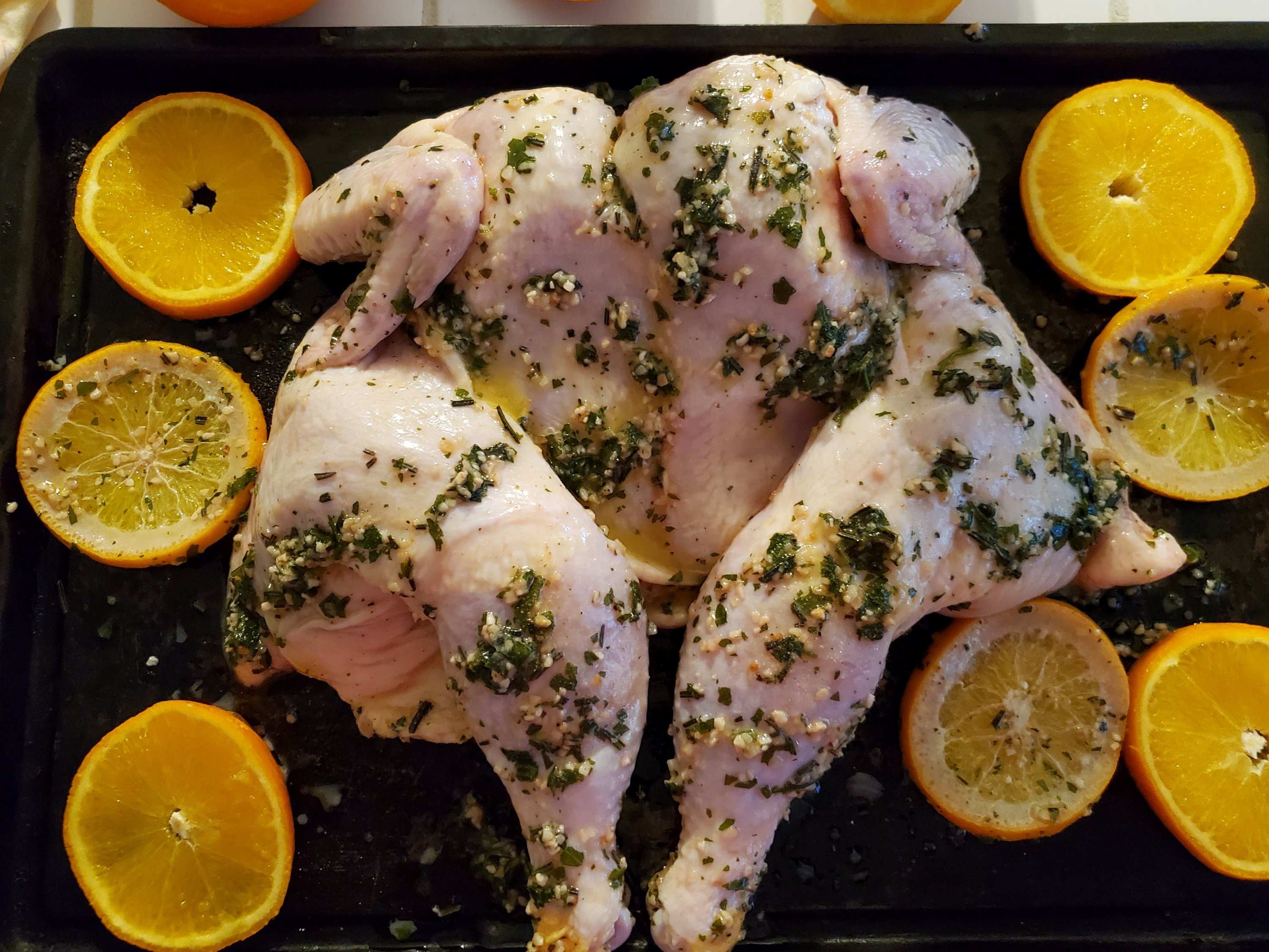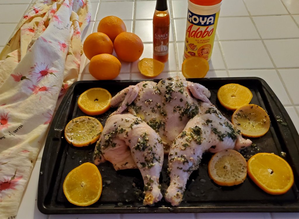 Although my lemons 🍋 are turning yellow, I still prefer oranges for many recipes. 🍊 Herbs courtesy of my little garden AND my daughter’s garden 🥰. The recipe I’m sharing, from Savuer is used for basics; but you can use whatever citrus you want. Herbs & seasonings can vary too. I’m not even going to do the onions this time 😜