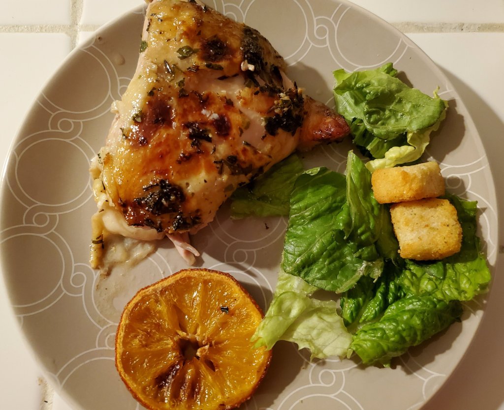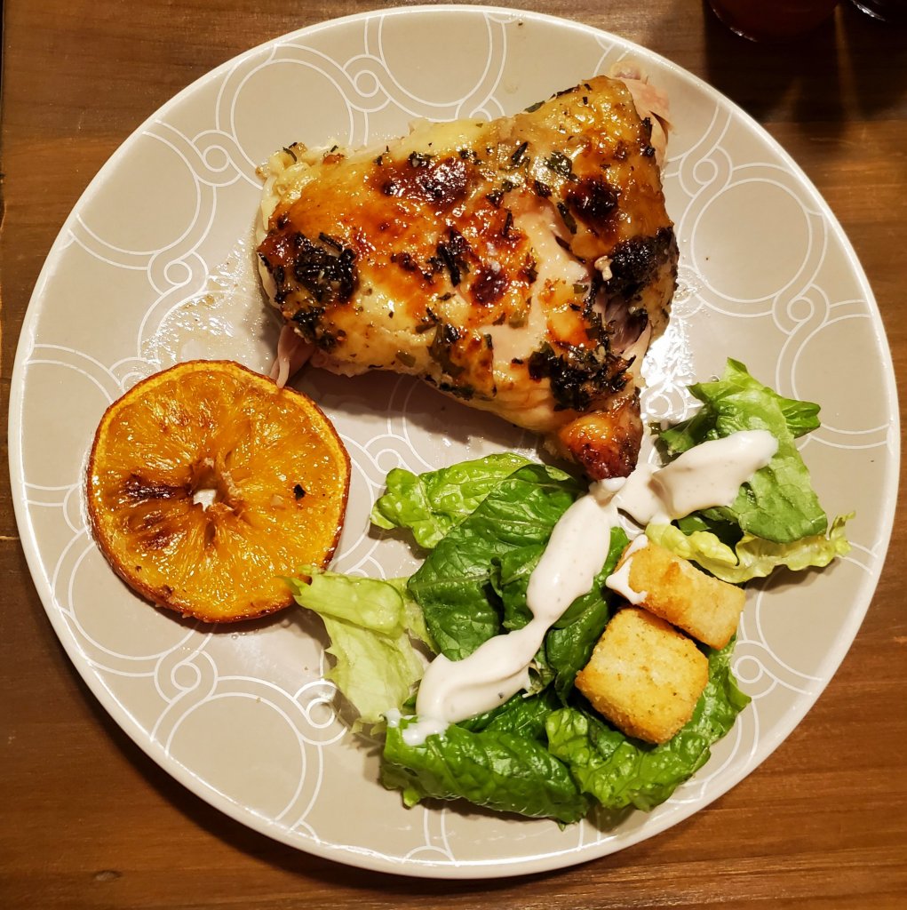 - Transfer the roasted chicken, onions, and oranges to a large platter. Garnish with fresh herbs if desired.