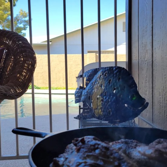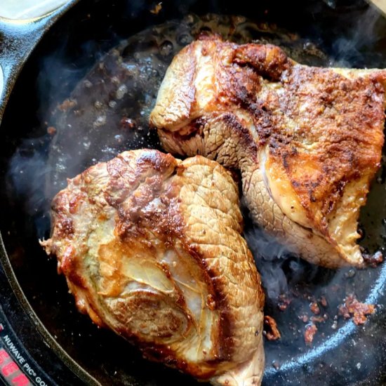 I seared it, this time (usually cast iron skillet), in my ninja foodi. The sides are high so it leaves less mess, no mess on stove. Or OUTDOORS!