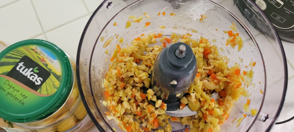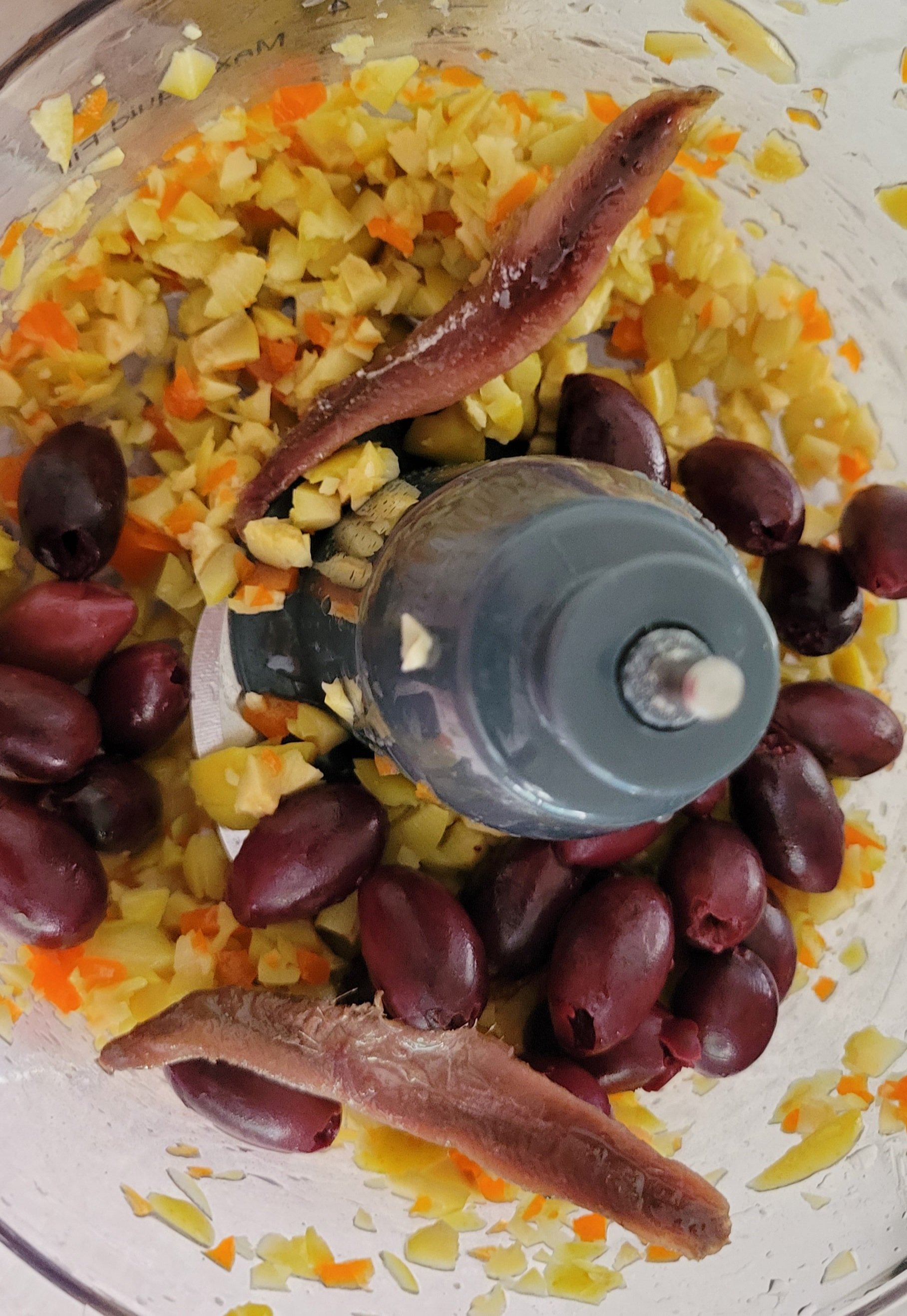 Combine all ingredients in a food processor; pulse 10 times or until olives are finely chopped.