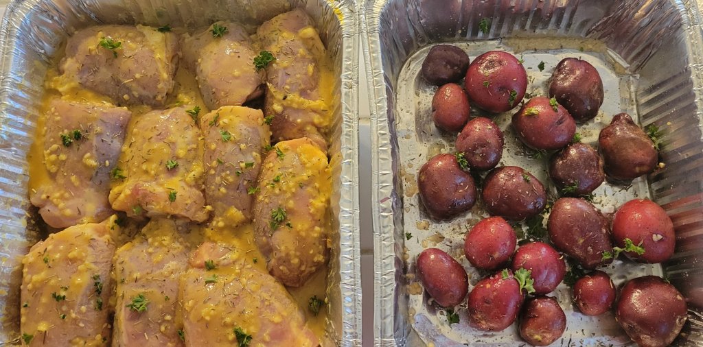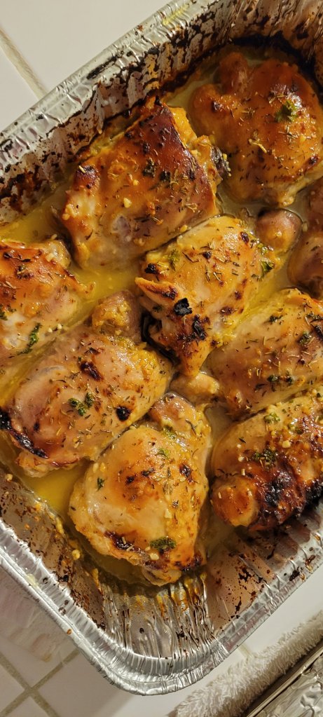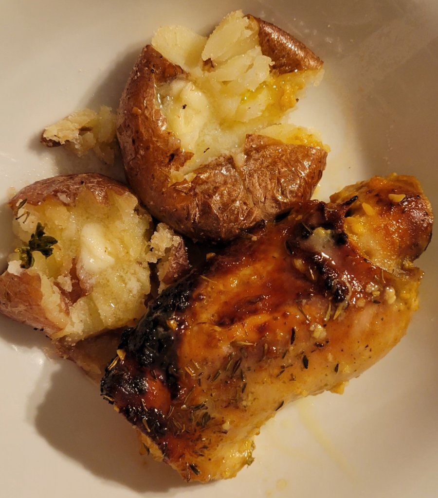 Maple Dijon Chicken (usually 🤭) BUT I didn’t have Maple Syrup soooo… I went with HONEY (& heavy on the garlic), making it Garlicky Honey Mustard Chicken w/new red potatoes; that I put in oven earlier than chicken & they were GREAT w/some crispy skin. https://dawnspitfire.wordpress.com/2015/06/30/delicious-too-easy-chicken/?preview=true
