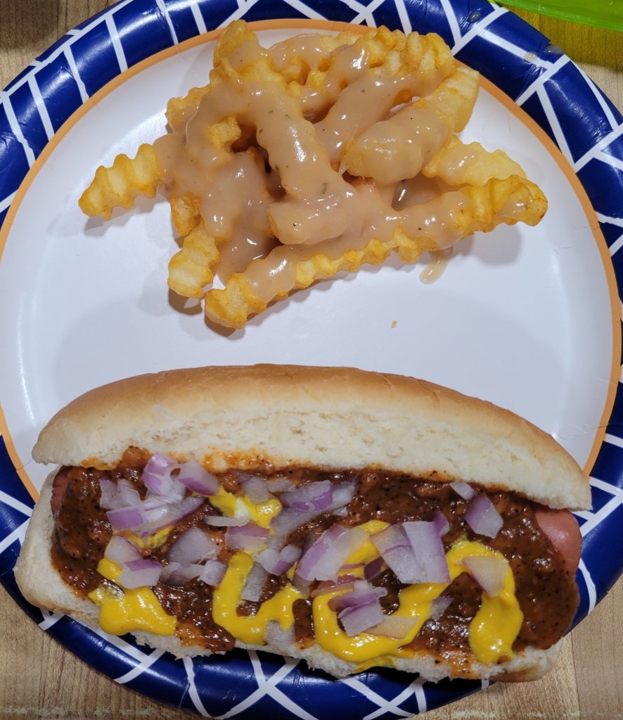 I know! Me?! 😆 I do, I do…sometimes. Now, with more reading of The Minimalist (along with current administration/nut house causing inflation…out of control…within 6 months‼️), I decided to do more, so not only did I make the usual good meals from Thanksgiving leftovers, but I’ve been shopping at the dollar store (weigh quality, quantity, price) before I head over to grocery store; no extra gas because they’re across the street from each other. One thing new was with chili hot dogs 🌭 I didn’t go with Boar’s Head or Dietz & Watson, not even Hebrew National or Nathan’s; no I went with Oscar Mayer bun length for $2.99. AND Wonder Bread buns! 🤭 generic french fries, homemade brown gravy, and it was all good! 👍 😋