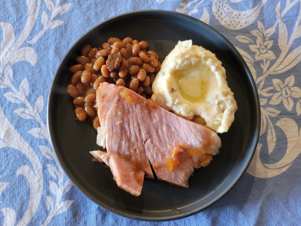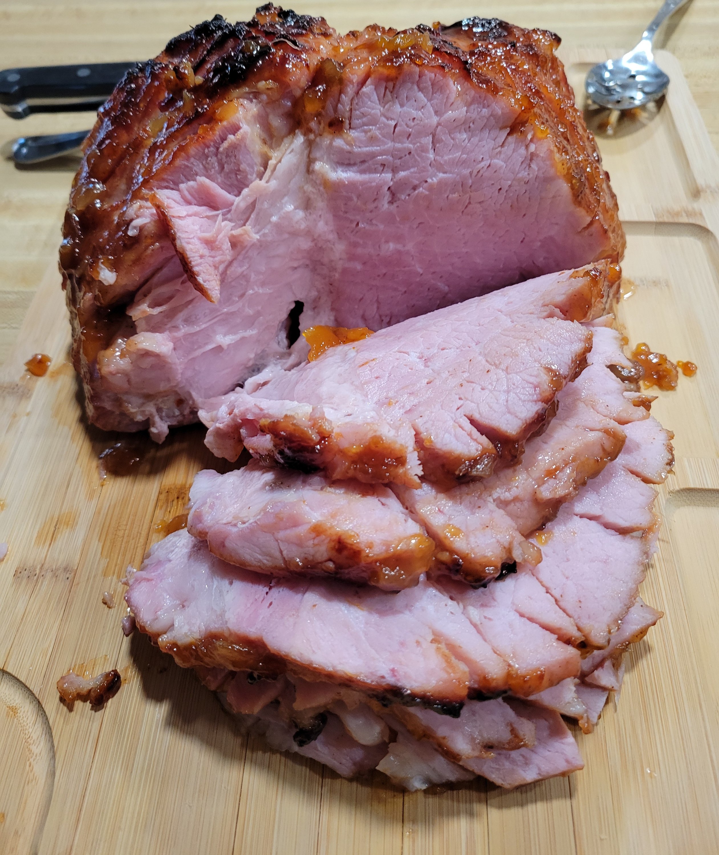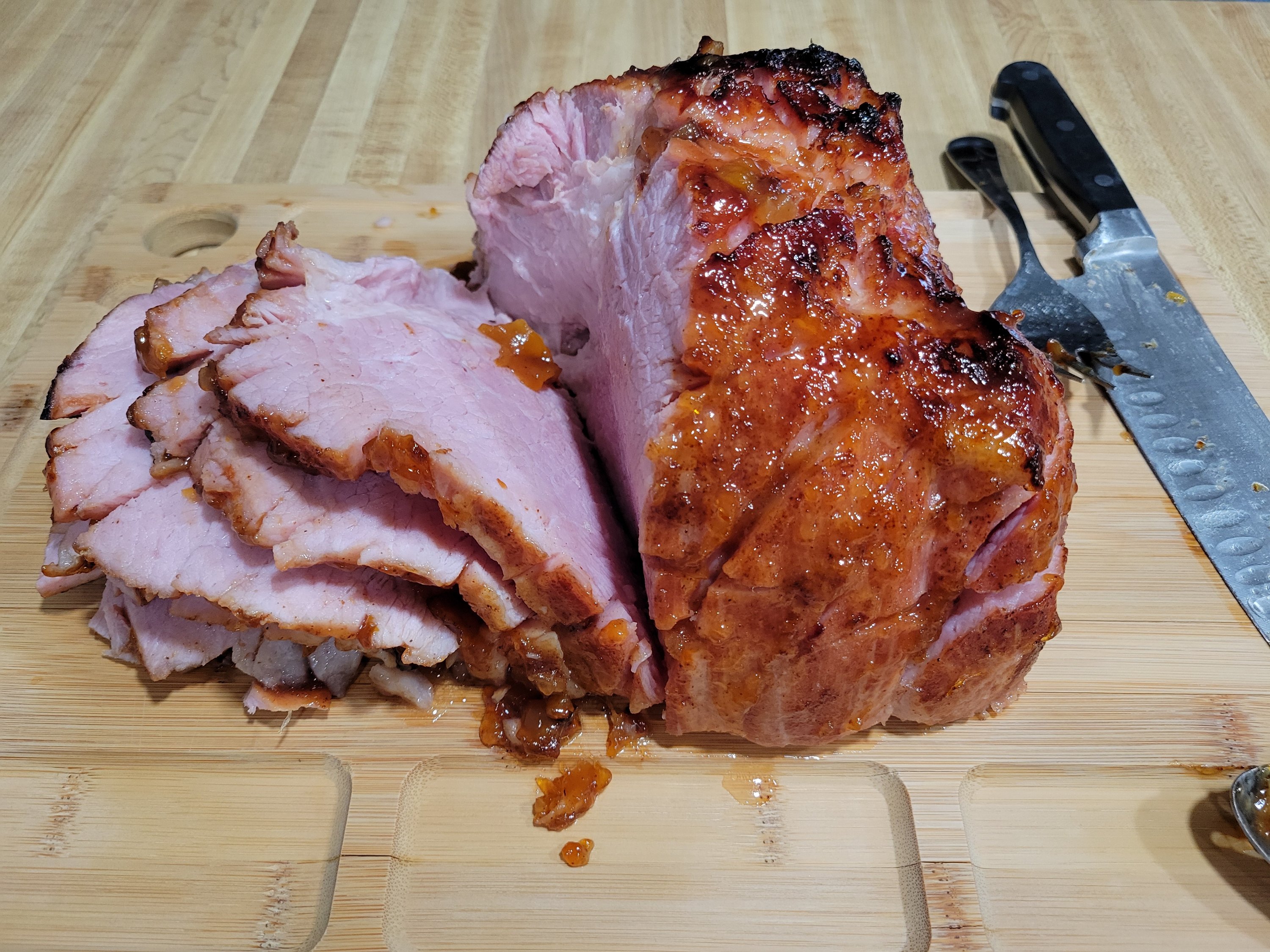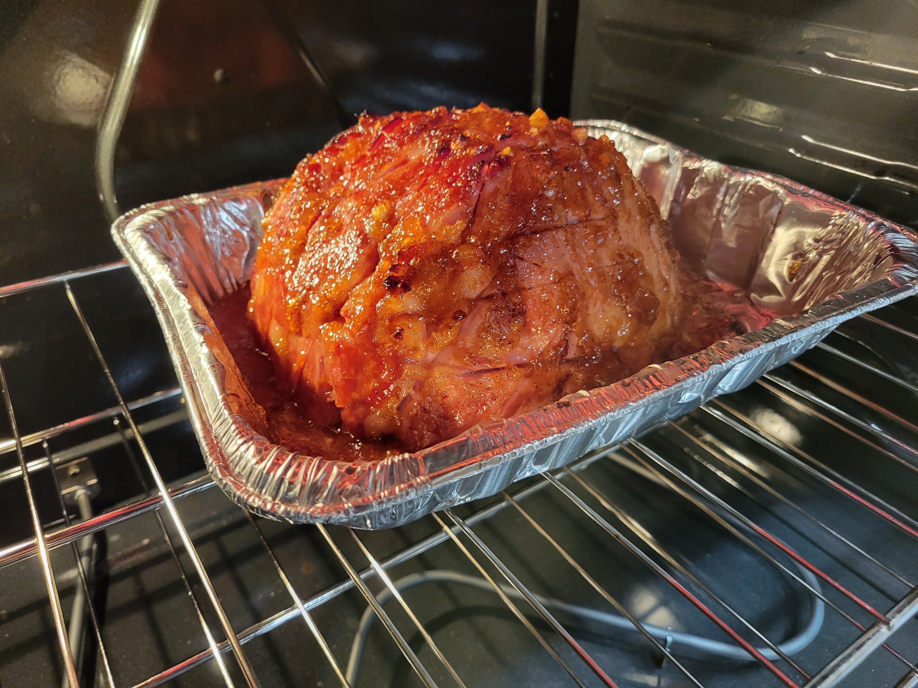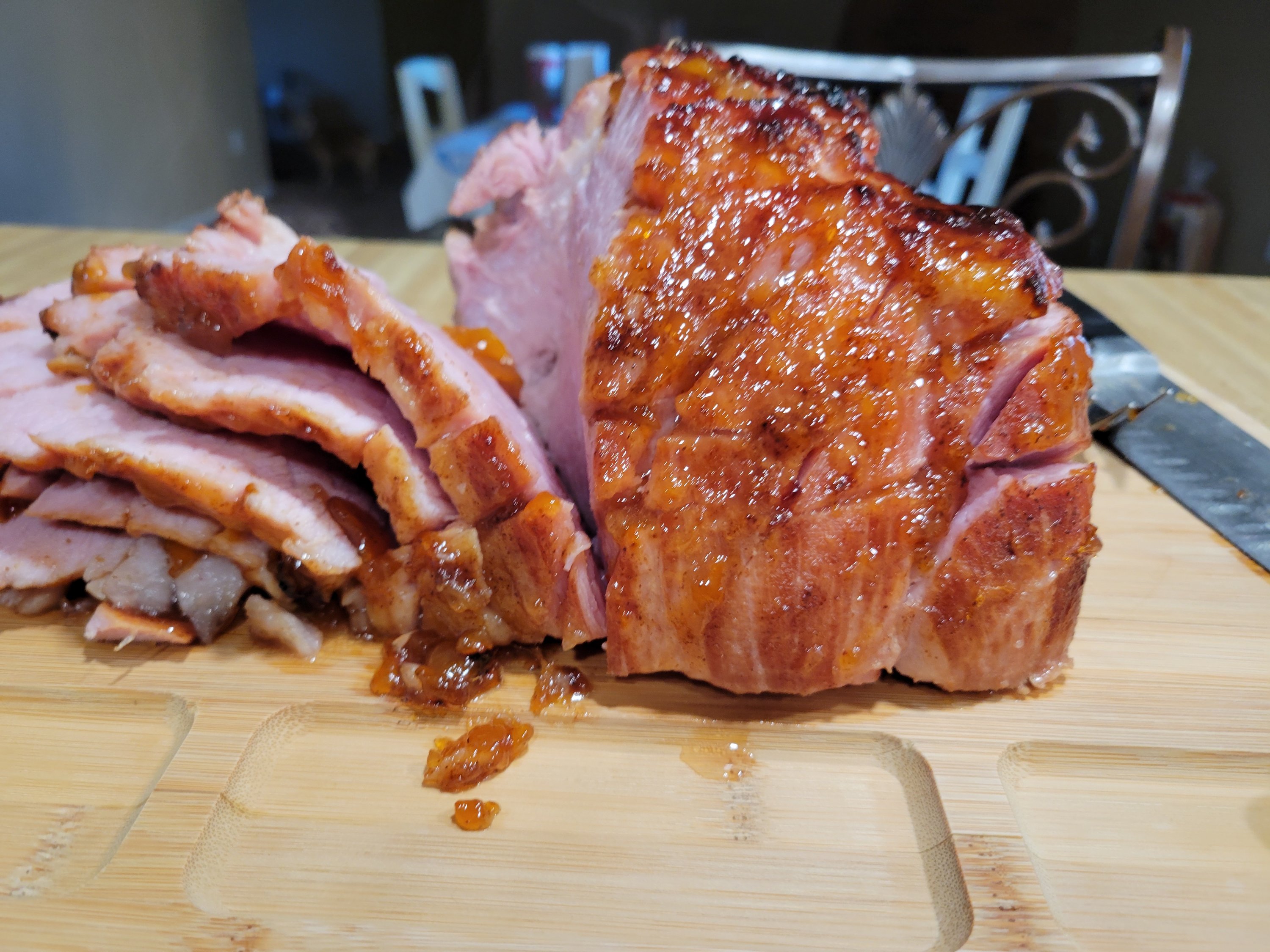 EASY! recipe at links π I changed to this pineapple rum sauce I had instead of marmalade. And I did turn the broiler on high for a few minutes π after spooning some of the glaze back on top. https://dawns-ad-lib.com/2016/12/06/how-i-baked-a-cheap-ass-ham/
