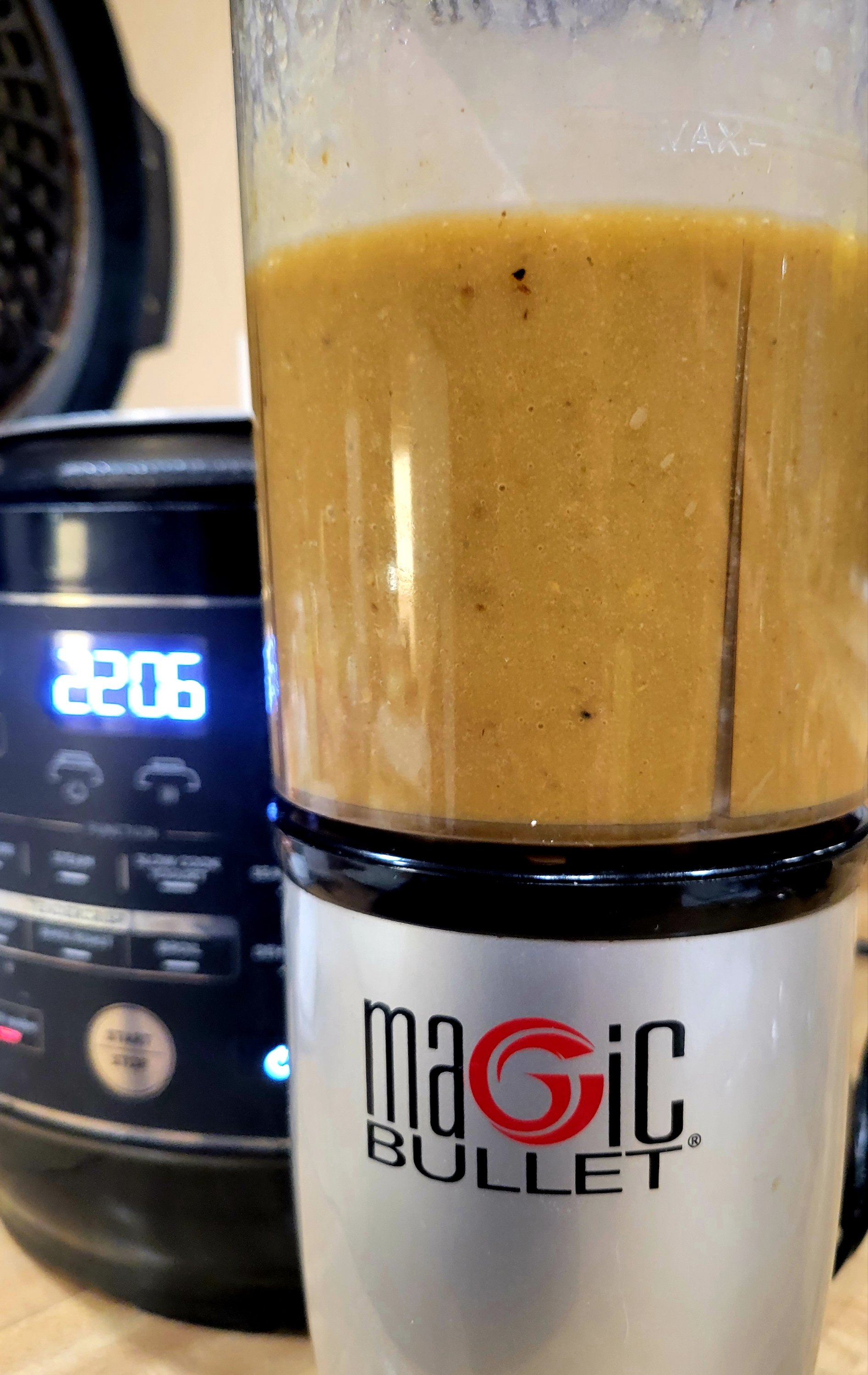Add cilantro to pressure cooker and using a hand blender, blend everything together in the pressure cooker.