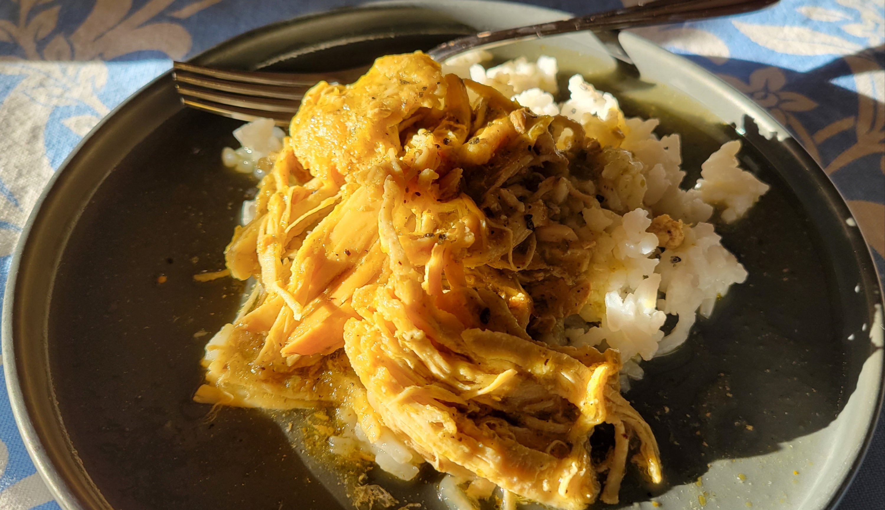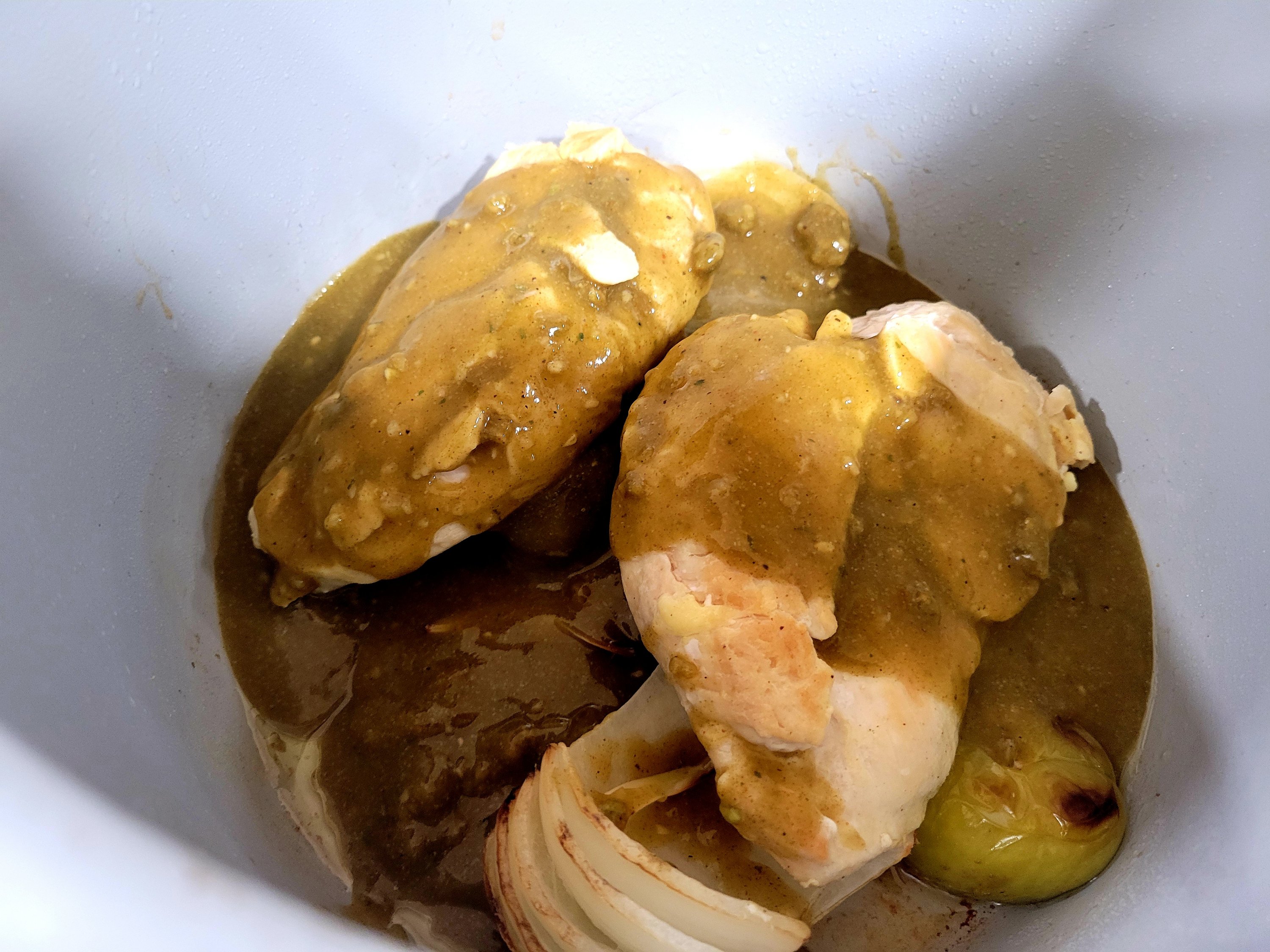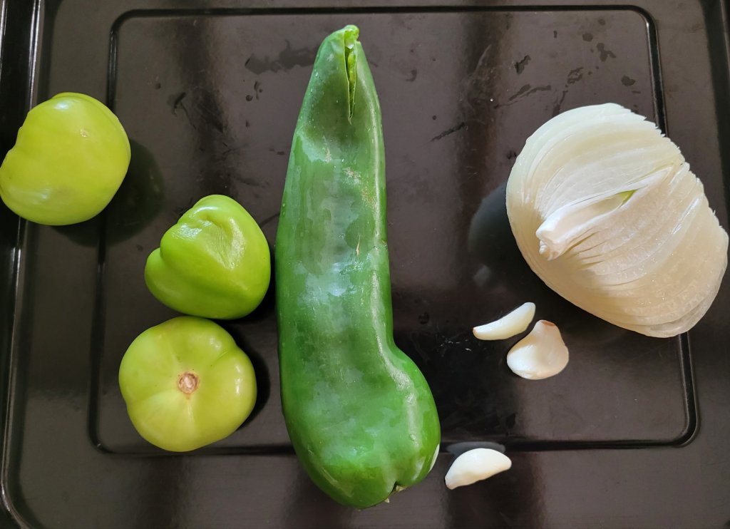 - Heat cast iron skillet over high heat until hot.Add tomatillos to the skillet and roast until black charred spots appear. Use tongs to turn over.Lower heat to medium and add peppers, onion and garlic. Roast for about 5 minutes or until charred spots appear.Add chicken, charred tomatillos, peppers, onion, garlic, cumin and salt to pressure cooker.Lock pressure cooker lid in place and set steam vent to Sealing.Select Pressure Cook (Manual) and cook for 12 minutes on High pressure.