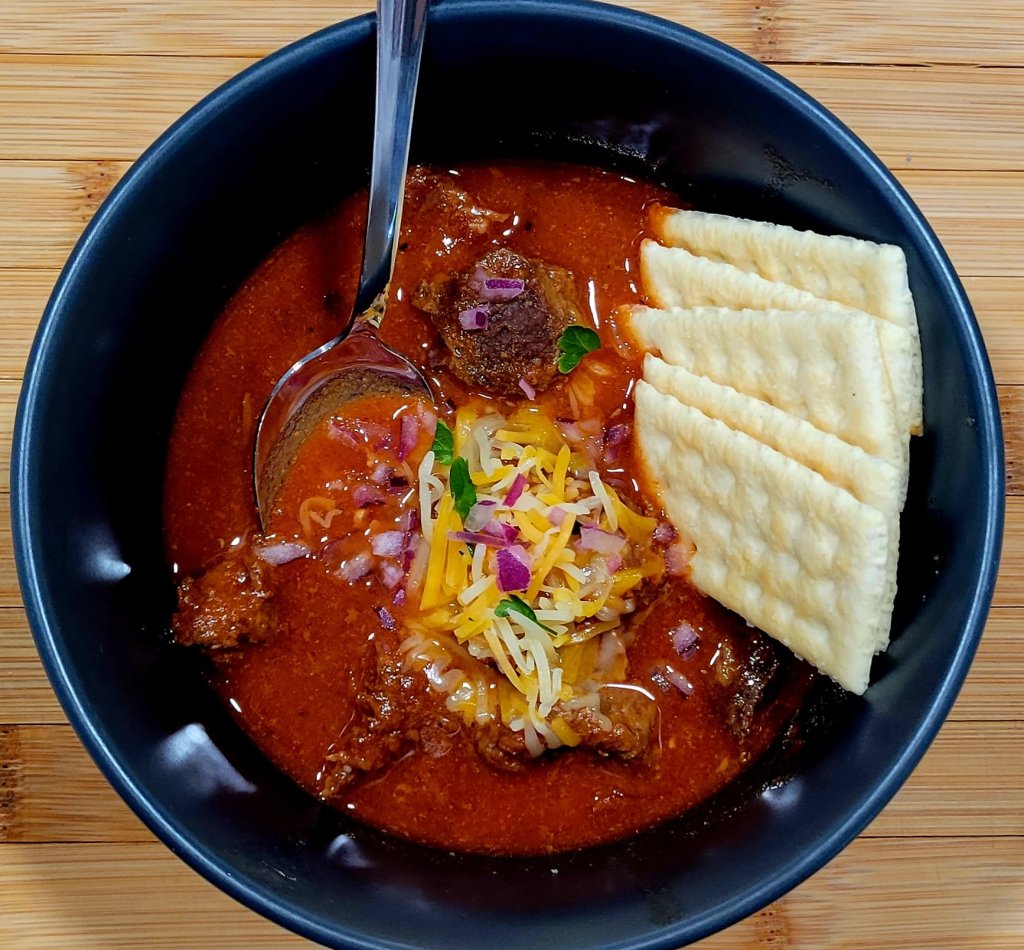This authentic Texas chili recipe has won over 12 blue ribbon trophies at Chili Cookoffs throughout the country! This iconic brisket chili recipe was served at my Grandparent’s cafes since the 1950s and now I want to share it with your family! – Sarah Penrod (about Sarah at bottom)