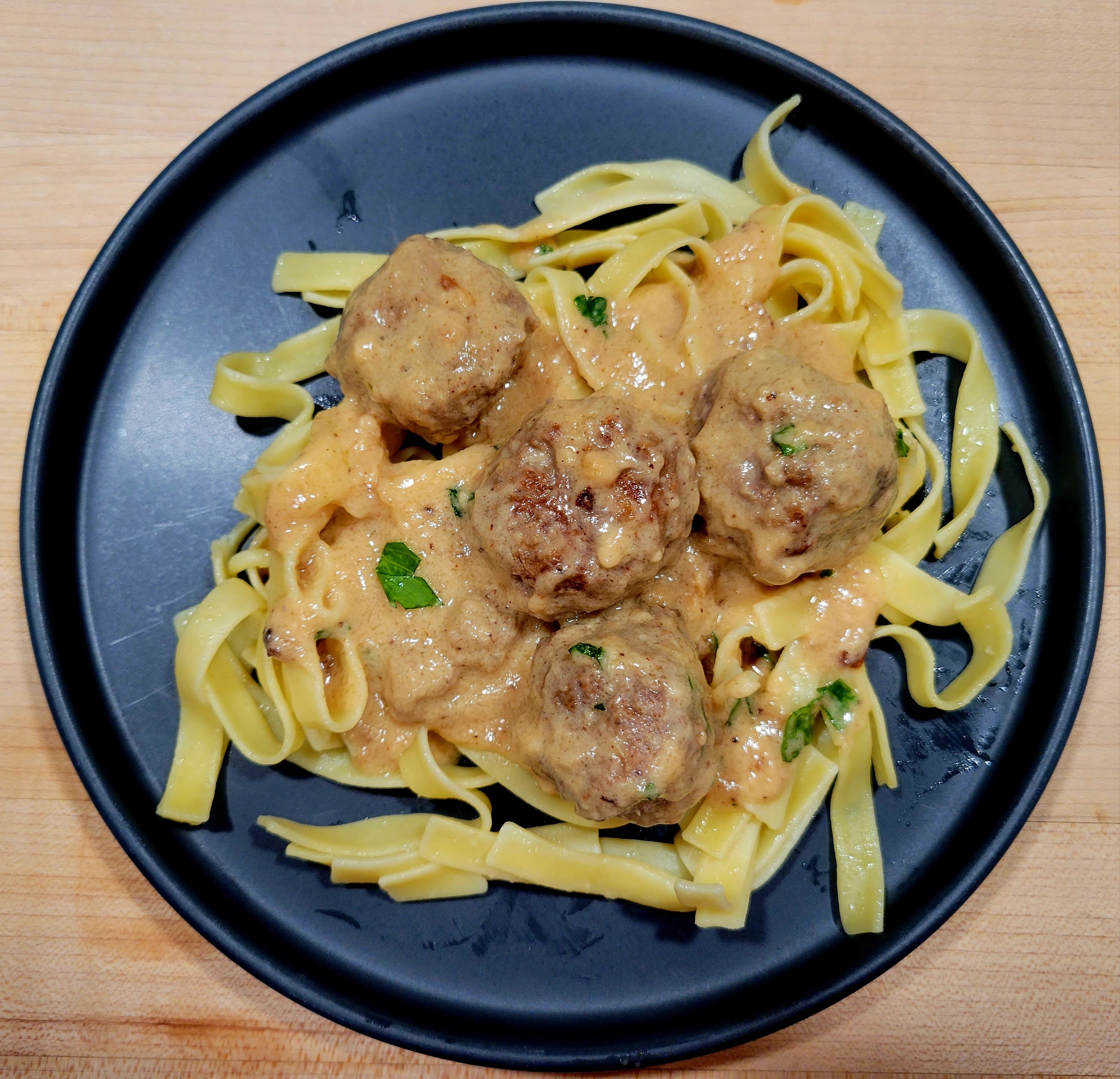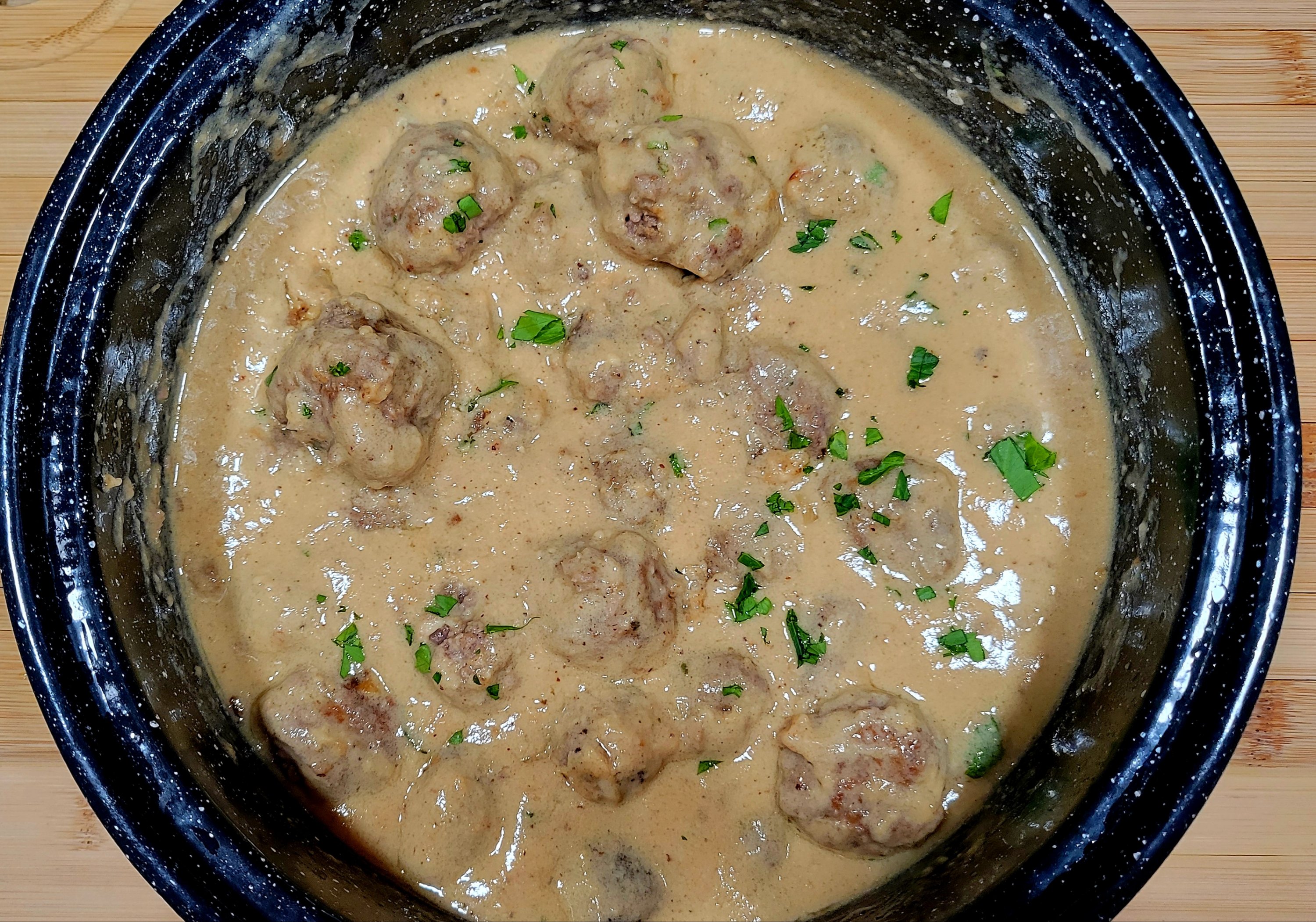 4. Pour over meatballs, bake 35-45 minutes. Serve over noodles, mashed potatoes, your preference. Sprinkle with parsley