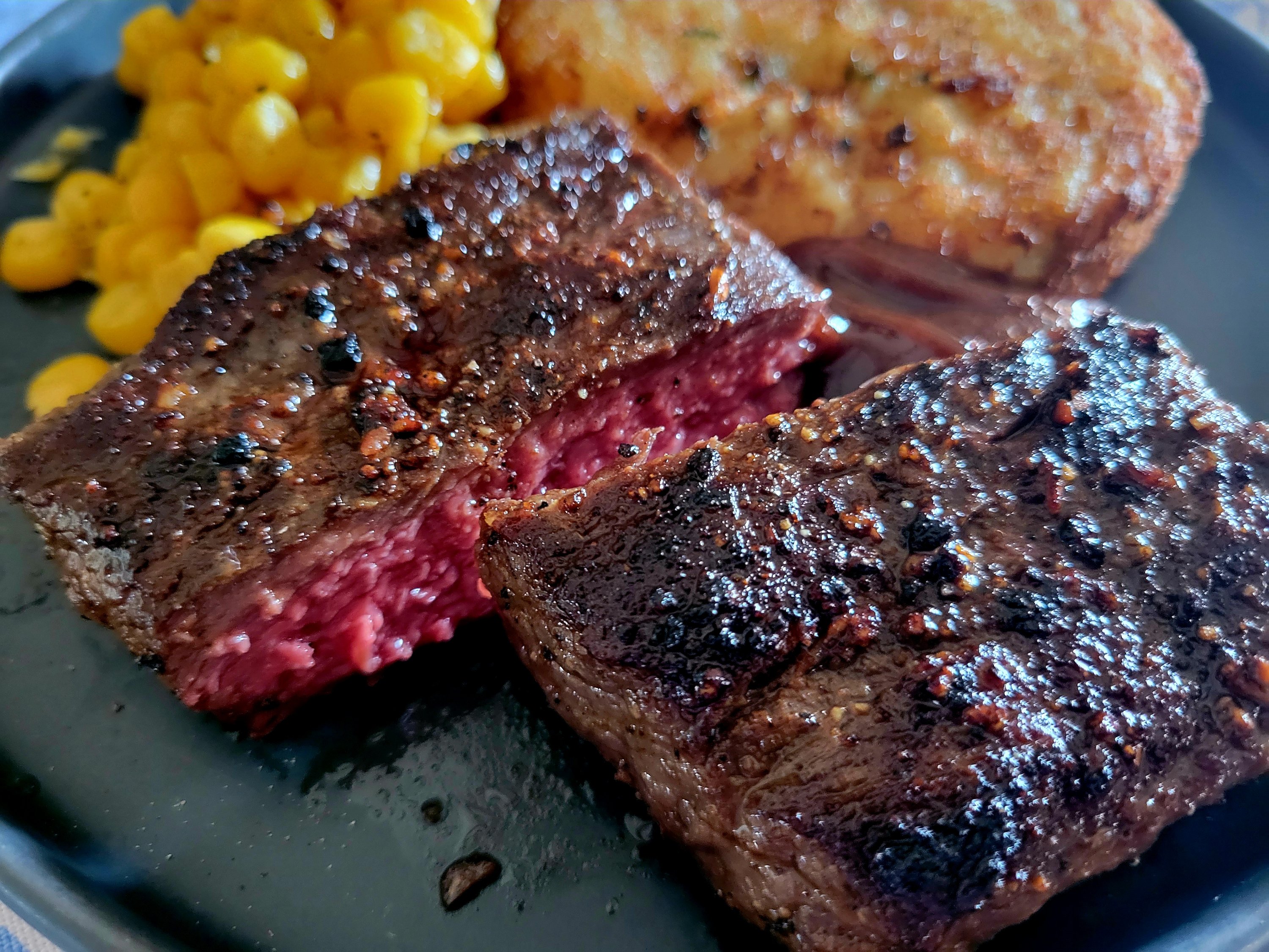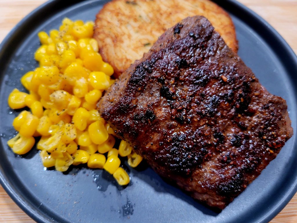with steakhouse style hashbrowns 🥔 and sweet corn 🌽