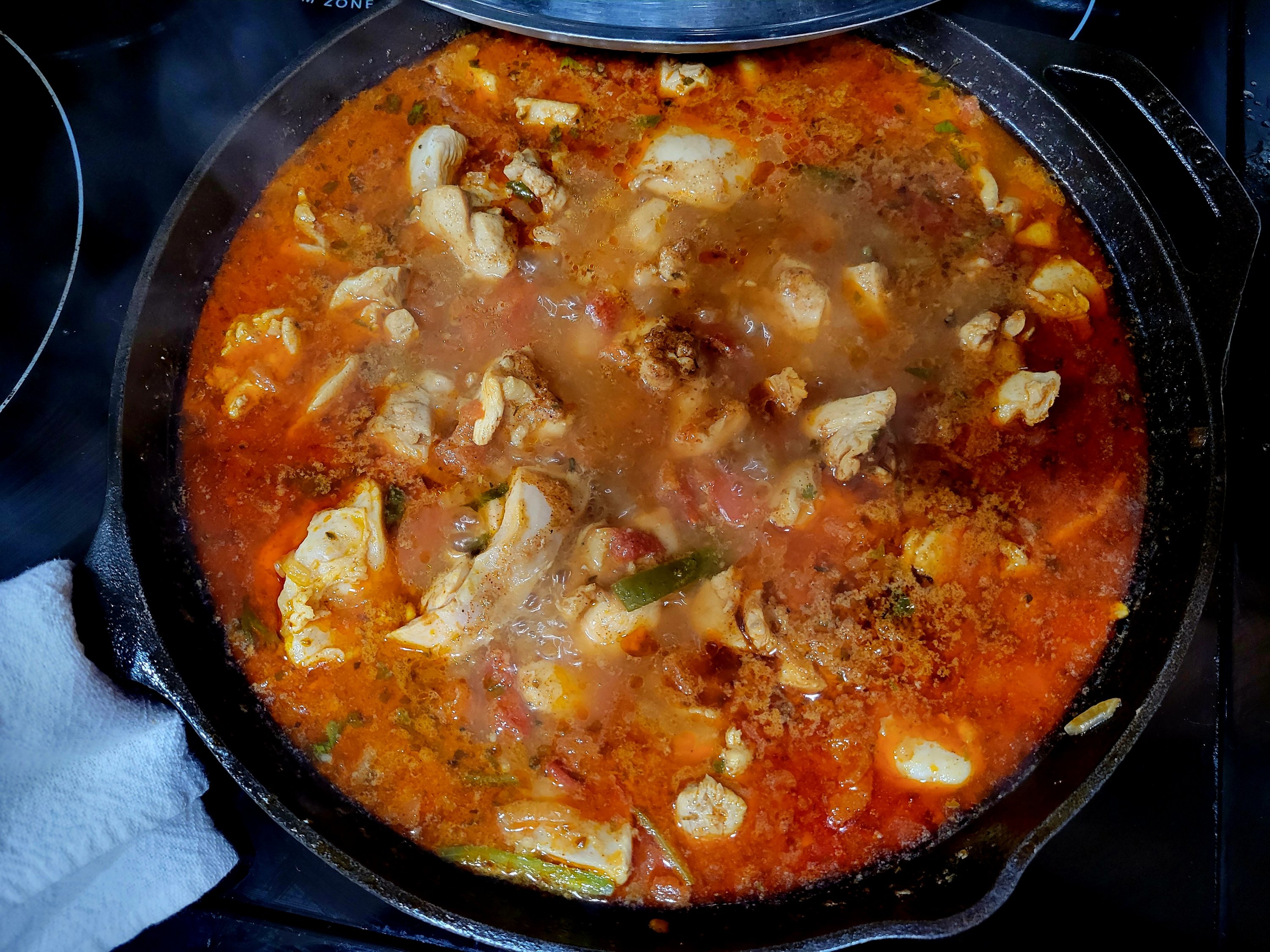 3 tbs (a pile really) red chili powder [I used 2 different kinds, the basic (?) & New Mexico]