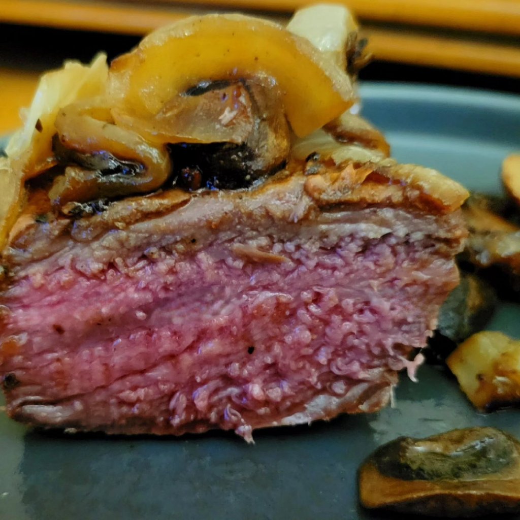 Steak and potatoes, Omaha Steaks, Private Reserve Top Sirloins, steak with mushrooms and onions,