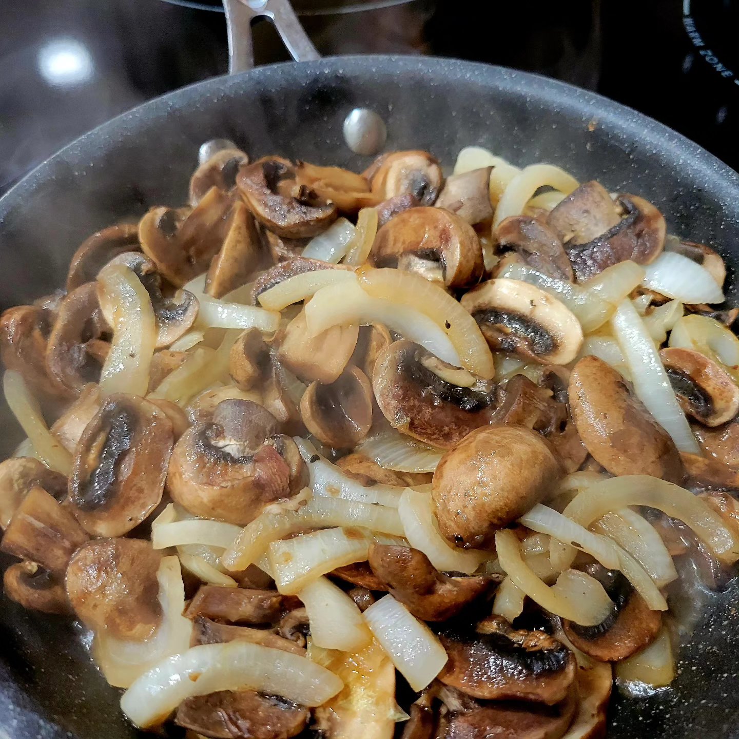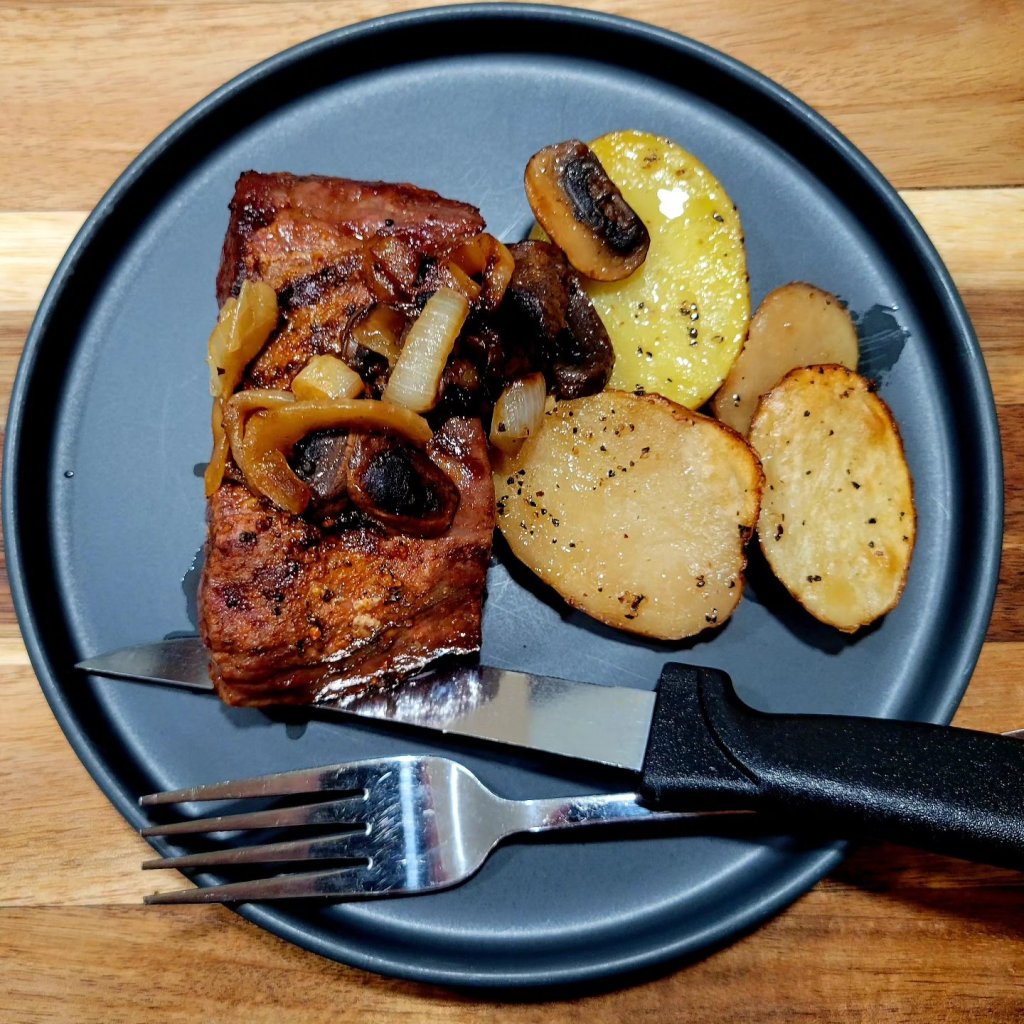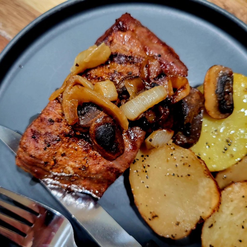 And grilled steak 😜 pork chops, sautéed mushrooms and onions 😋 roasted potatoes w/garlic & herbs 🌿 *note