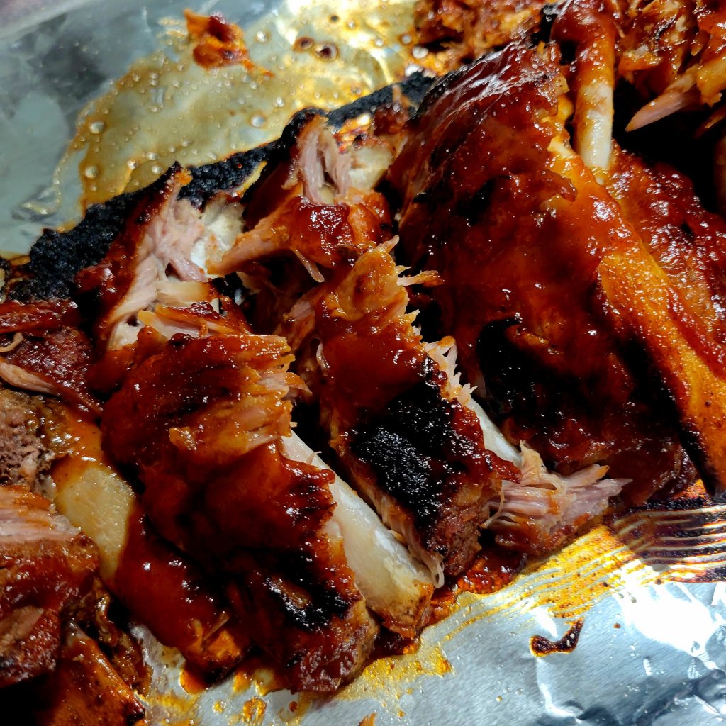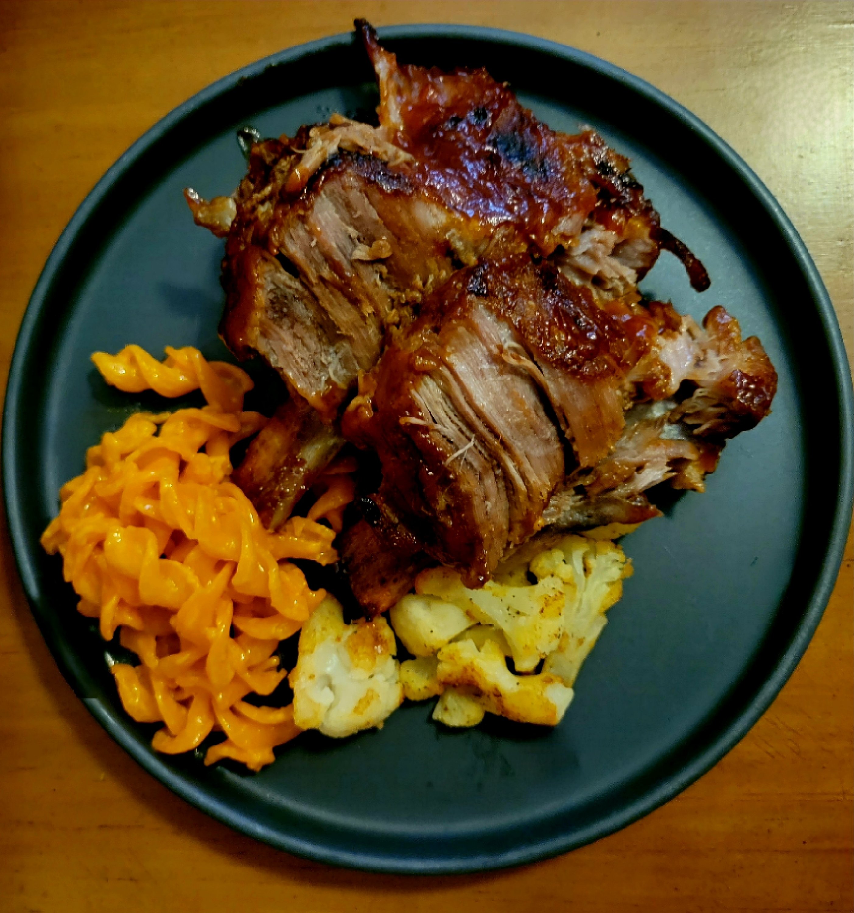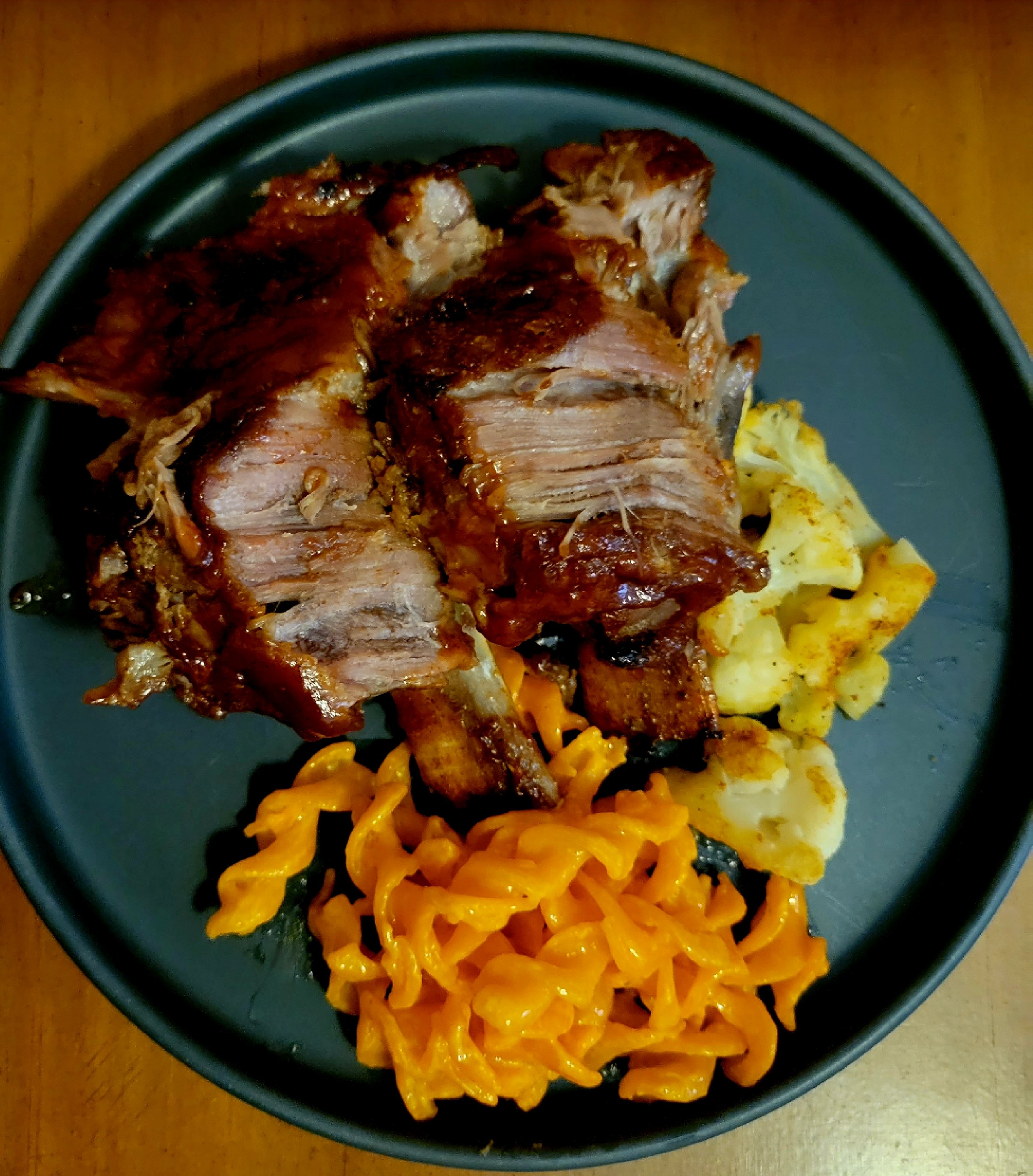 Repeat dishes; although I did use pressure cooker for ribs this time, 25-30 minutes, then bc it’s 115°, I mopped them with favorite sauce (Stubb’s Sticky Sweet Barbecue Sauce) & stuck them under broiler real quick.