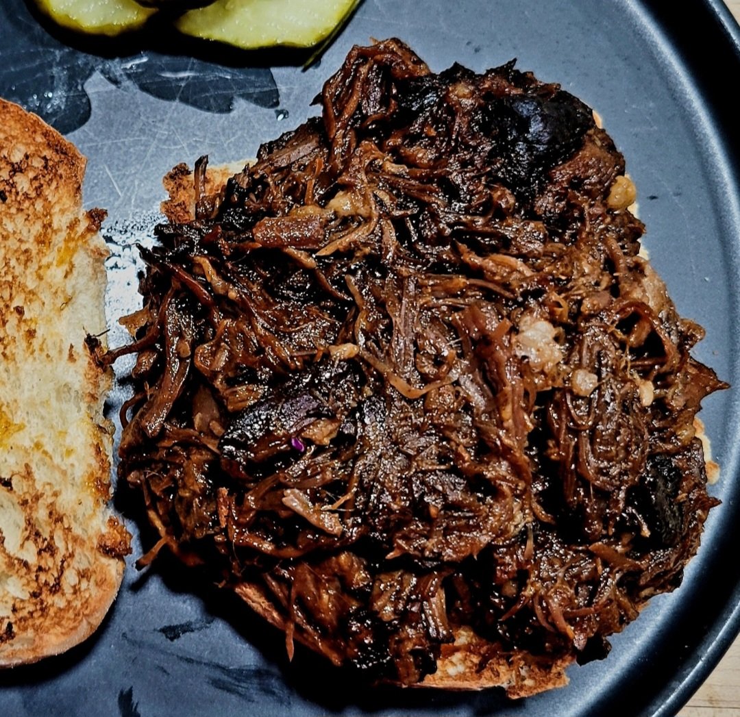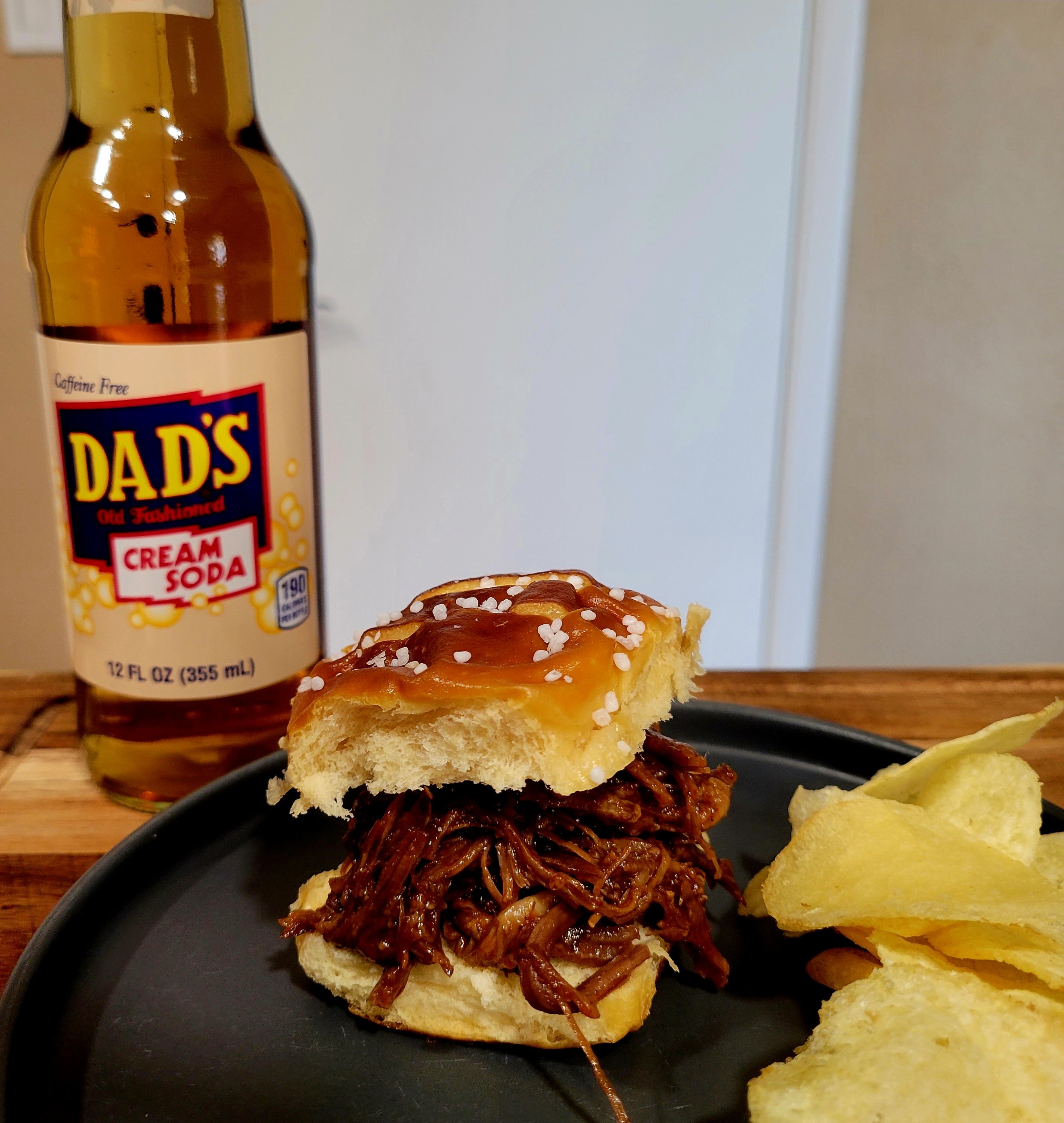 This time I made #Sliders w/cute little #pretzelsliderbuns , AND I ran across this OLD recipe by A & W Rootbeer, which got me thinking “hey”…so I used my #ninjafoodipressurecooker #ninjafoodi is lasting years now 😁 w/a lot of use. First, I seared SEASONED beef roast in the #Ninja , using coconut oil, then I added a little #dadsrootbeer & beef broth, then pressure cooked it for an hour. Next, I transferred it to my regular #crockpot #slowcooker bc it’s easier to serve from, shape & depth. Even though the Ninja has a slow cooker, too. I don’t mind washing this stuff bc they are easy to clean. I shredded the beef (easily falling apart w/tongs), then added our favorite #stubbsbbqsauce ‘sticky sweet 😋 I leave crockpot on ‘warm’ so ‘whoever’ can eat ‘whenever’ 😜 #damndelicious