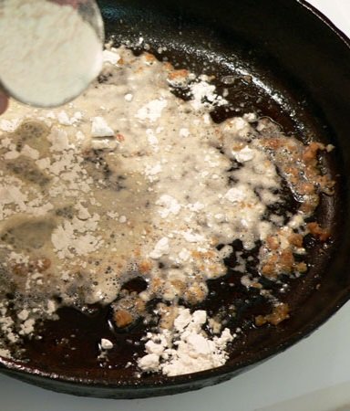 Cook pork sausage (I start mine with bacon fat ๐), stirring to break up (I like to use a potato masher), add 1/4 cup flour, cook flour about 2 minutes, season (careful with salt ๐ณ), generous with black pepper, crushed red pepper (optional); add milk (2-2 1/2 cps) a little at a time (med/high heat), stir as it thickens, until desired thickness. I didn’t measure that ๐ซข recipe if needed โก๏ธ ย Best Sausage Gravy and Biscuits – Always good with eggs ๐ณ