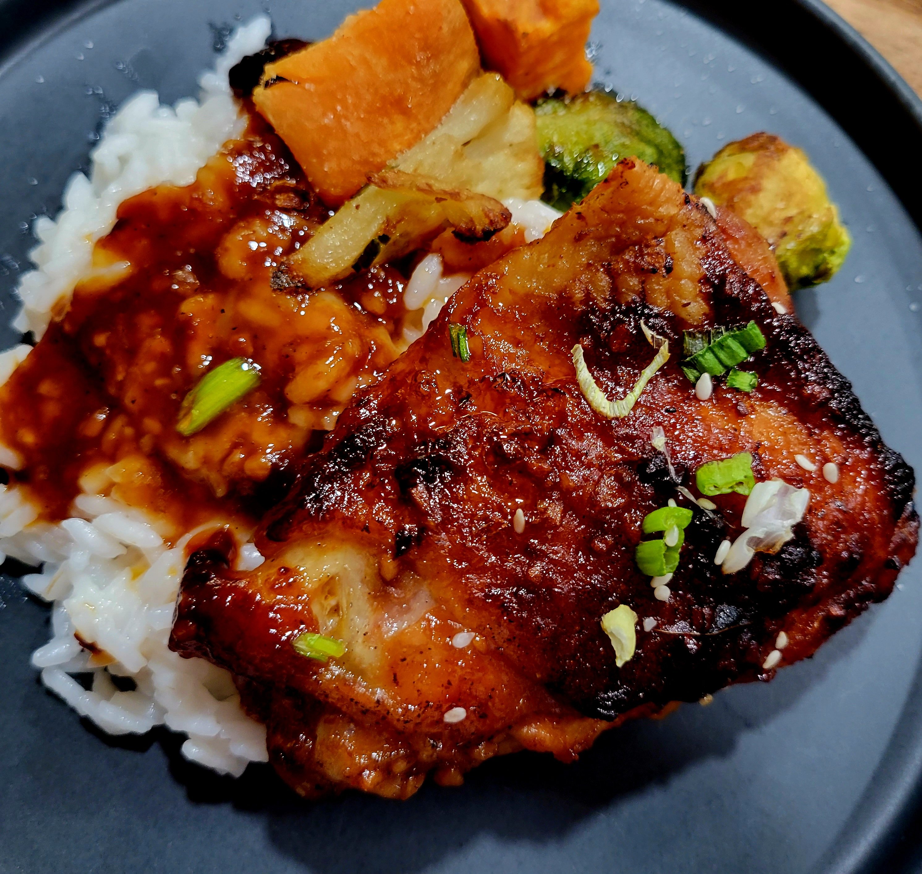 and it certainly is damn delicious! Of course, I don’t get out measuring spoons or cups, except for with rice π eyeball it and TASTE. I did add a dash of crushed red pepper flakes πΆ I browned the chicken outdoors on induction burner… to save the mess π€ͺ then continued following recipe inside. I did not need to use broiler; it was just right when the timer went off. Served it with rice and a side of roasted vegetables. I will definitely make this again. Oh π€ we drizzled a little hoisin sauce over all of it π