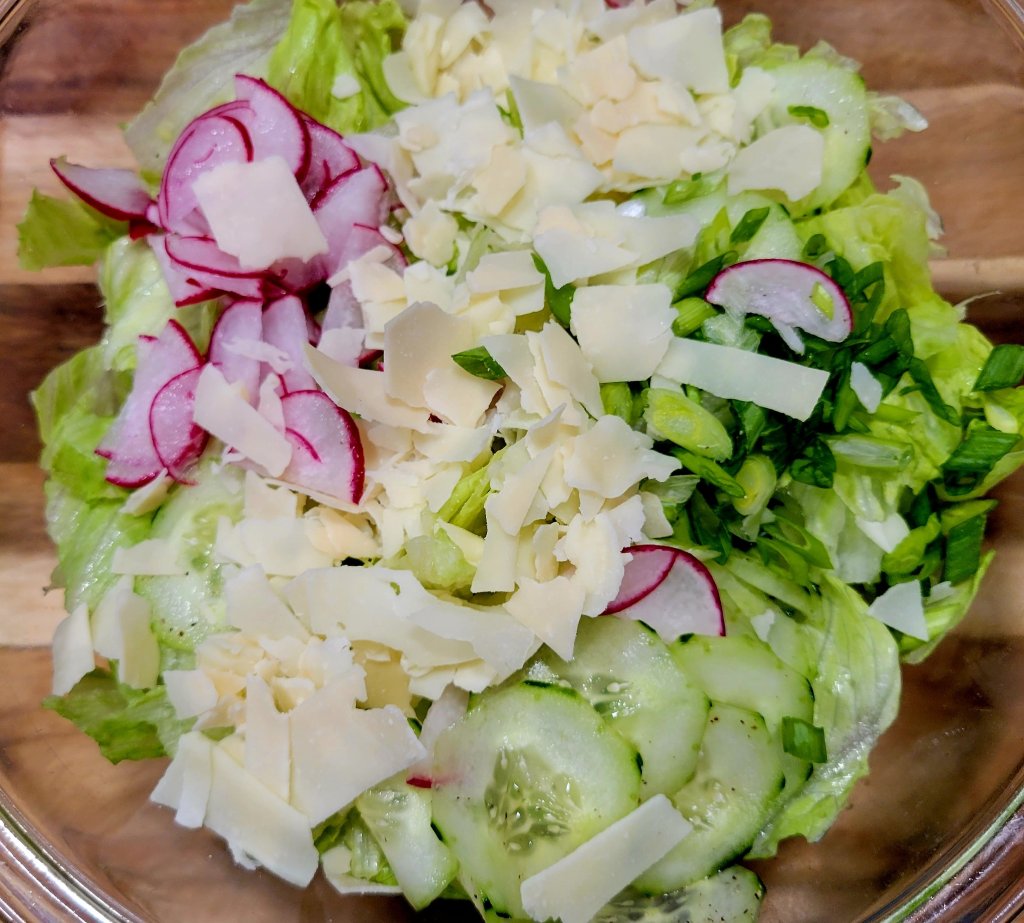 A fresh crisp salad, with cucumbers and a creamy dressing, made a perfect pairing for me; it helped me get through the spice 🌶🥒🥬🥗 because, due to my family liking everything SPICY, I added extra chili sauce.
