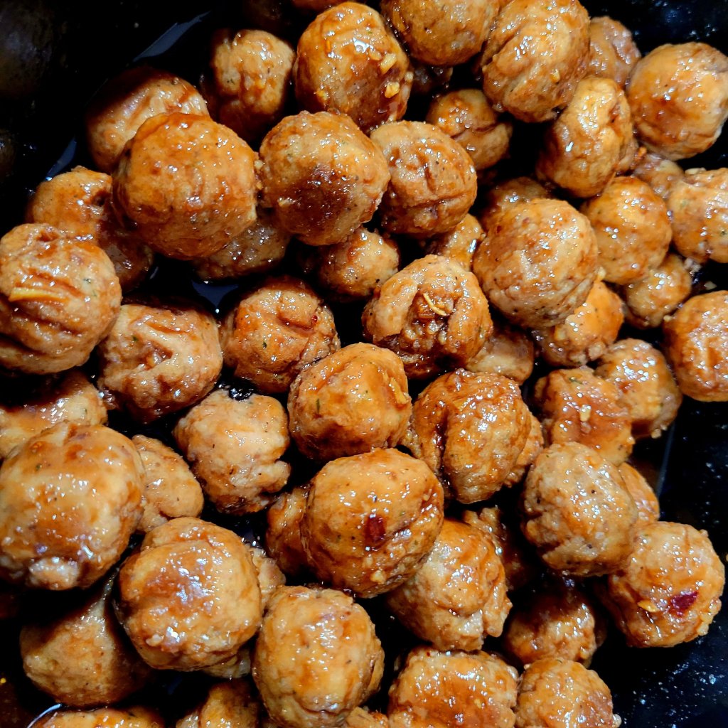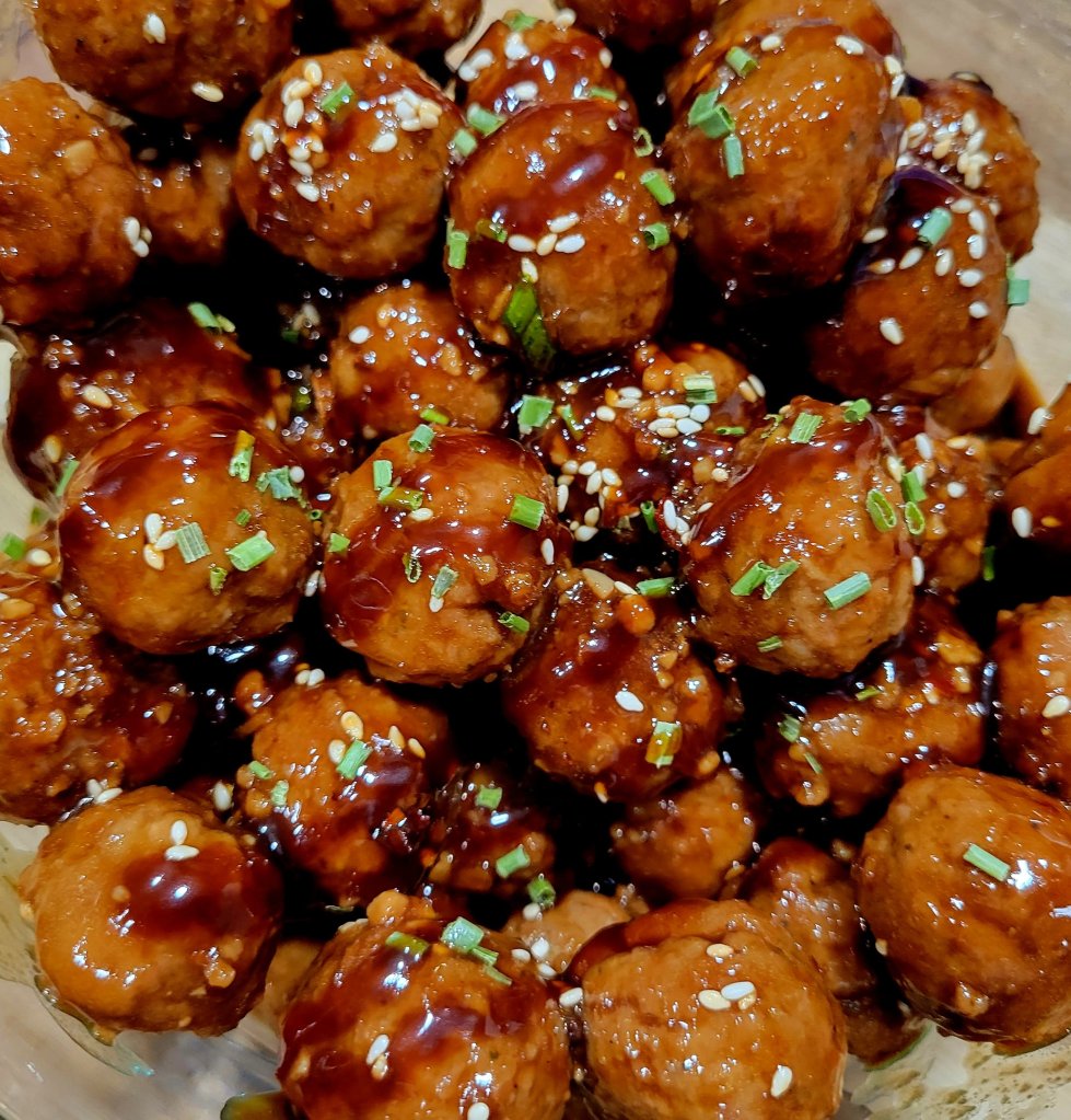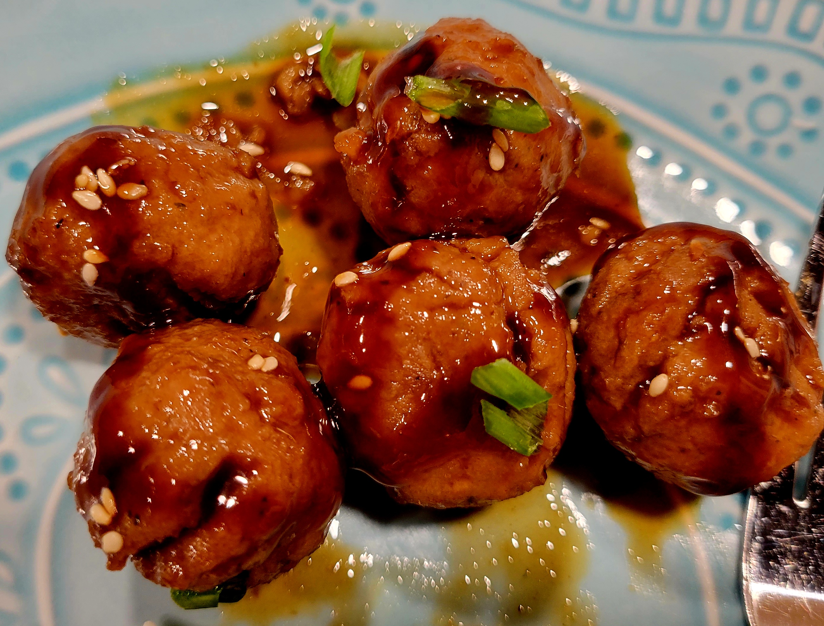 Bake meatballs as directed on package, then transfer to slow cooker on high. Pour Asian flavored sauce over meatballs, carefully fold sauce into meatballs; a silicone spatula works great! Allow flavors to simmer together for at least 15-20 minutes, change to lowest setting to keep warm. Can be an appetizer, or… we made it, along with a salad, for dinner. 😋 That’s enough for us.