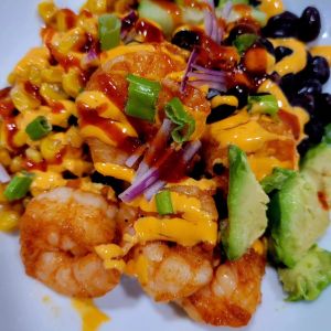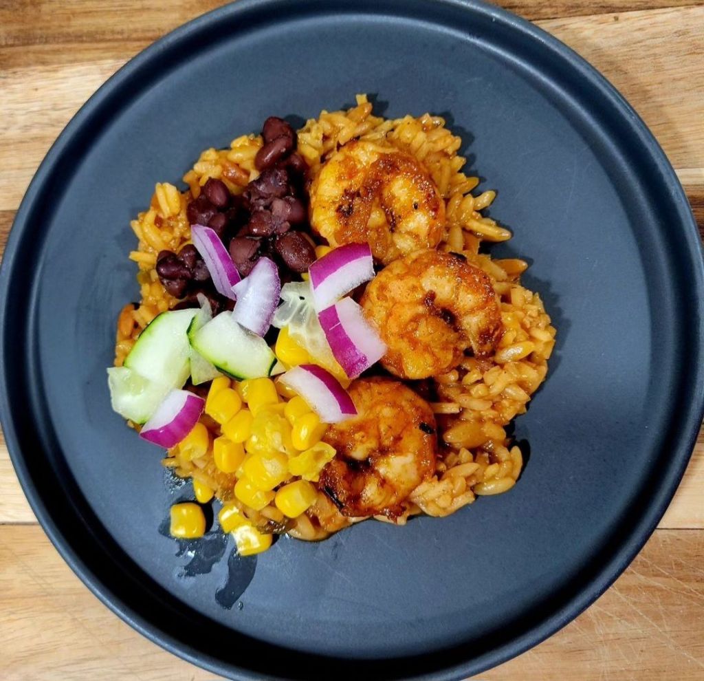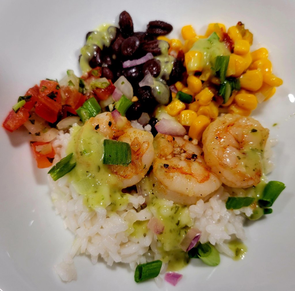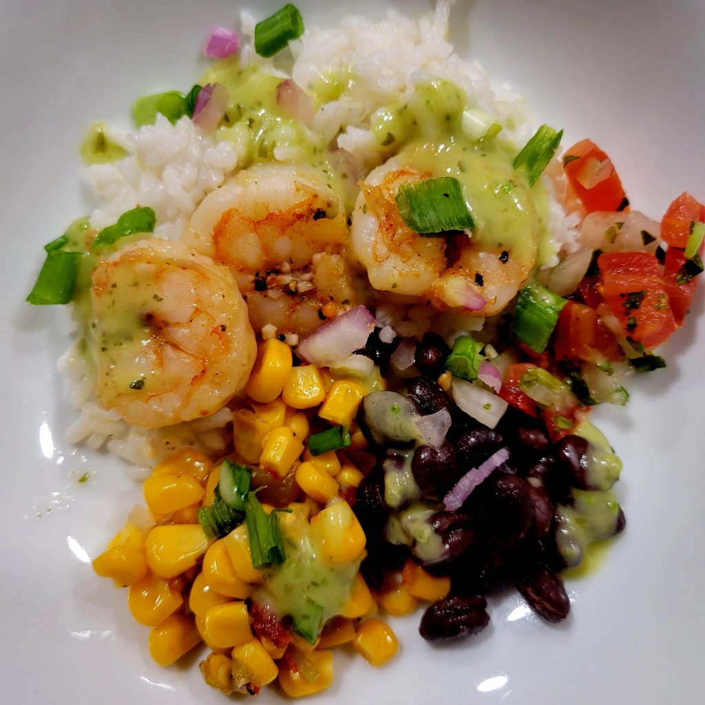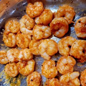 I seasoned (peeled & deveined) shrimp with salt, pepper, garlic powder, onion powder, chili powder, & cayenne pepper. Let that sit while I heated corn & black beans. Then, I cooked the shrimp in skillet with a touch of evoo, a couple tbsp of butter & minced garlic; about 4-5 cloves/couple tbsp. On medium (my stove runs HOT), for 4 to 5 minutes. THAT’S a quick meal. Obviously delicious 😋 it was gone before I got a pic 📸 🤭 Got some from the next time though 😉