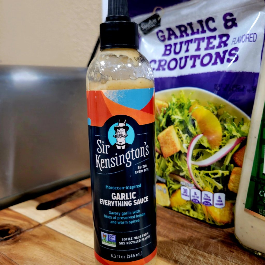 Oh by the way, I just discovered this Garlic Everything Sauce! Merci! That stuff is good. I almost went with that, but I resisted. Yeah, that stuff is good on anything!