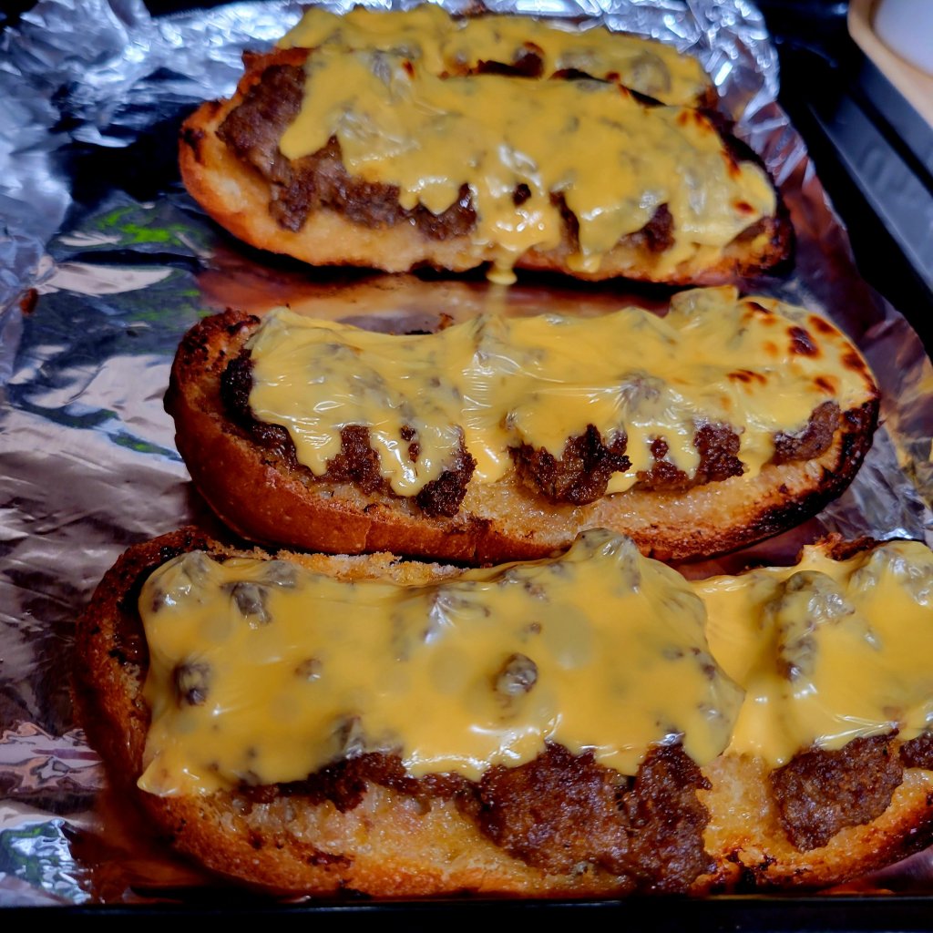 - In a 2-quart bowl, mix together first eight ingredients. Cut each loaf of bread in half lengthwise; spread one-half of meat mixture over each half, covering all the way to edges. Place on baking sheet.