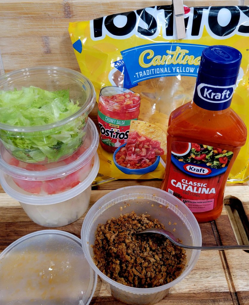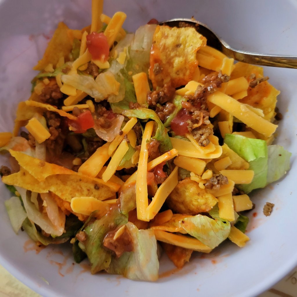 I usually make taco salad a day or two after tacos, using reheated leftover seasoned meat and fresh toppings, especially lettuce 🥬🍅 also…sour cream, salsa, jalapeño, your favorite cheese; we usually use mild cheddar (sometimes sharp 😉) , but would be good with Monterrey Jack, Colby cheese, Mexican cheese blend, Queso fresco, Queso añejo, Cotija, Queso de Oaxaca, Crema, and/or Chihuahua cheese (farm chihuahua Mexico, like a mild cheddar), or colby-jack.