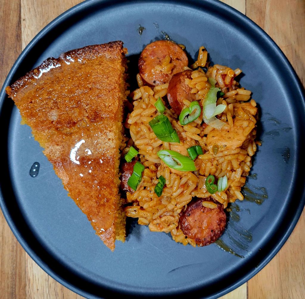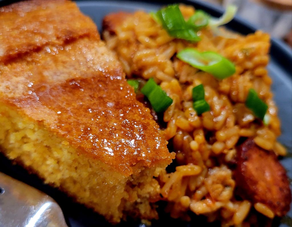 Easy Buttermilk Cornbread with Honey Butter & Jambalaya