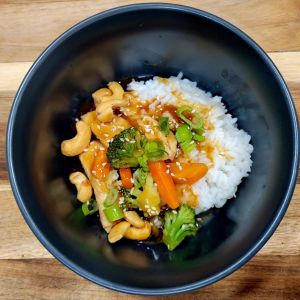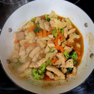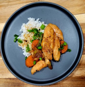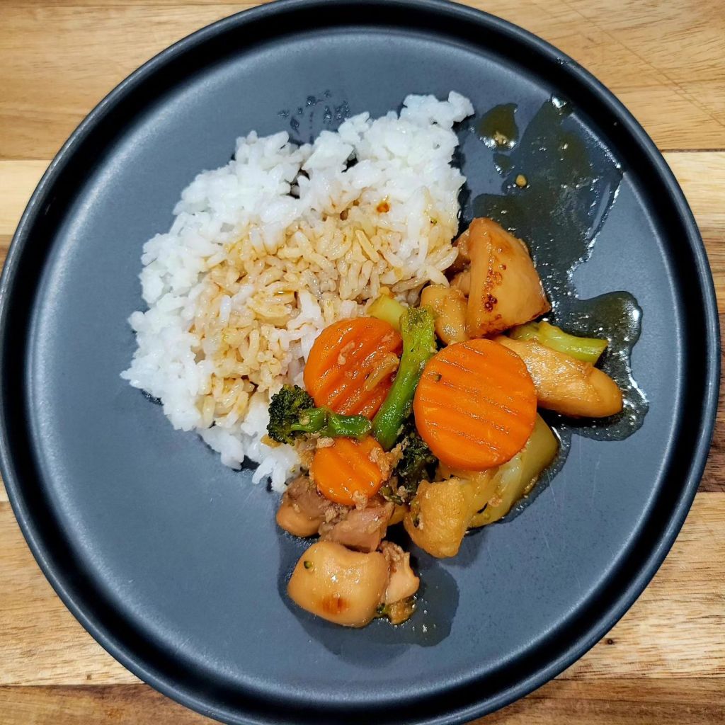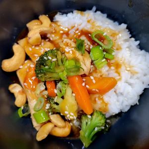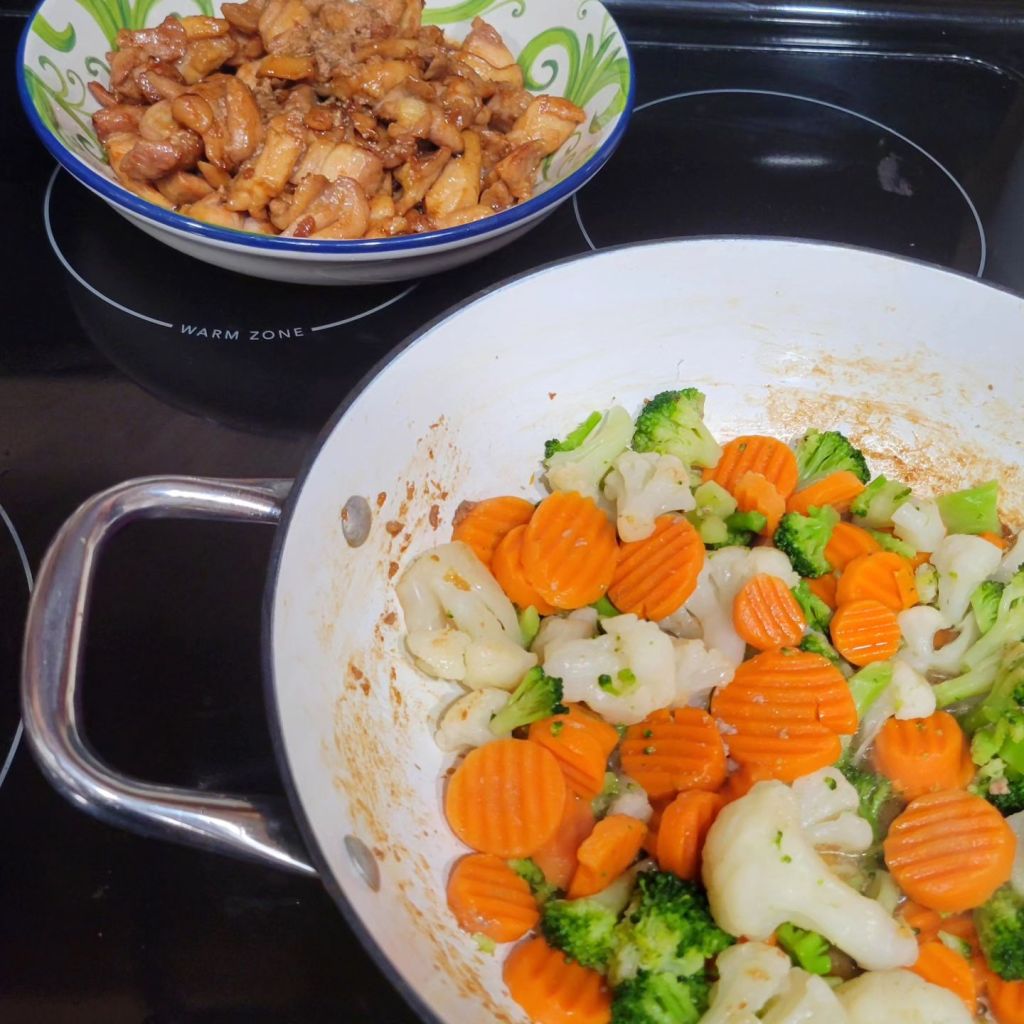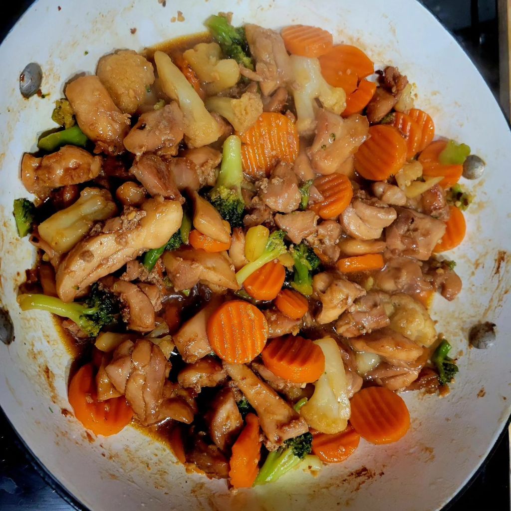 I made the recipe at the link below, except I used boneless skinless chicken thighs this time. And I cooked indoors, in same pan/pot. 😉 (Below, I’ve also made this using chicken strips; breast strips). I marinated chicken in teriyaki like sauce for a couple of hours first. Got chicken and vegetables ready, made rice, cooked chicken, set aside while I cooked vegetables, added teriyaki inspired sauce, and let cook until veggies were tender. It turned out delicious! Note; we LOVE coco aminos on dishes like this 😋 ⤵️