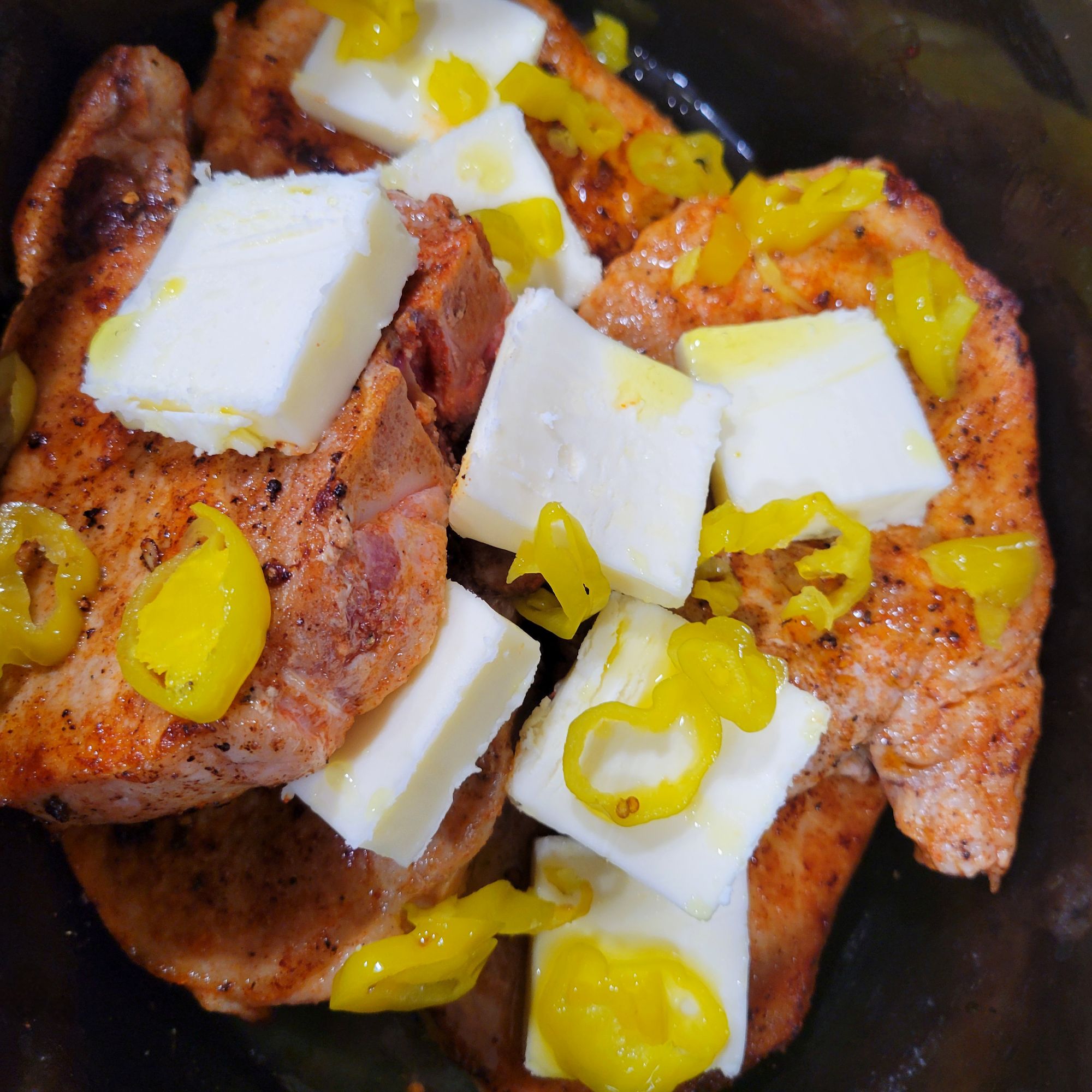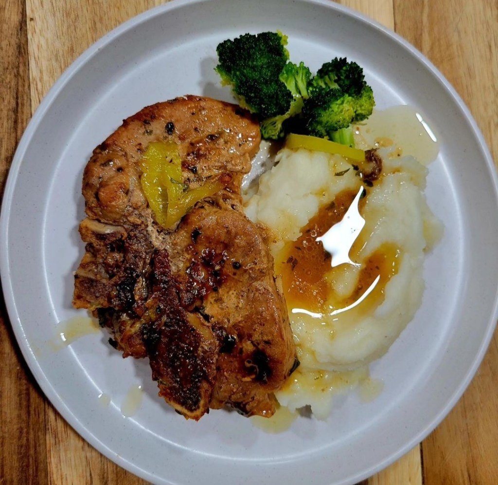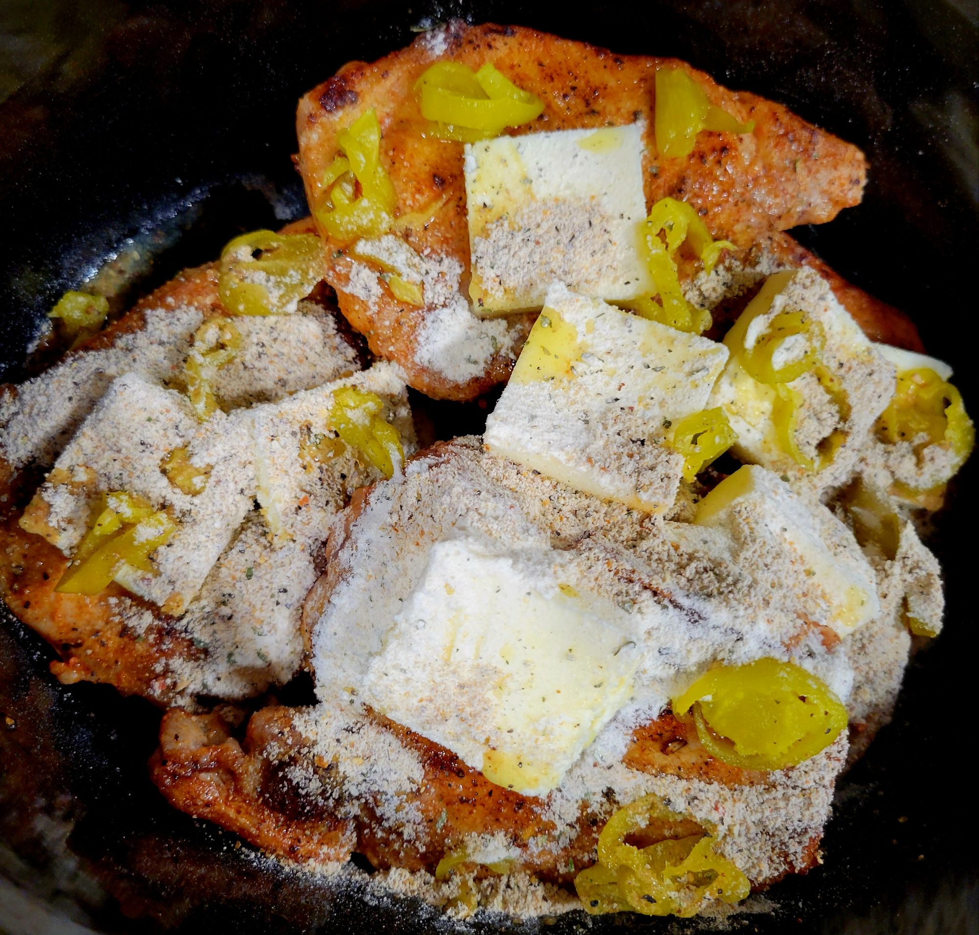 Same recipe as Mississippi Roast except I also use pork chops or pork roast; it all works. Dang delicious!
