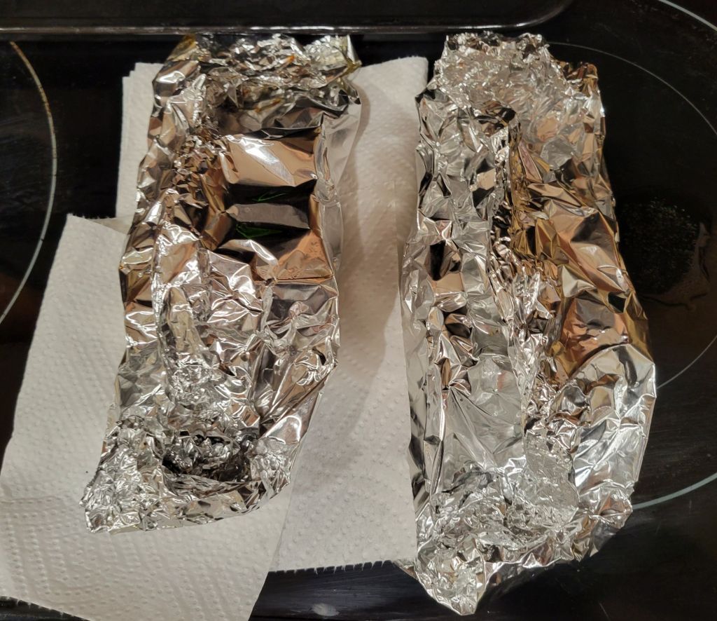 - Cut four strips of heavy duty aluminum foil about 2 ft long.