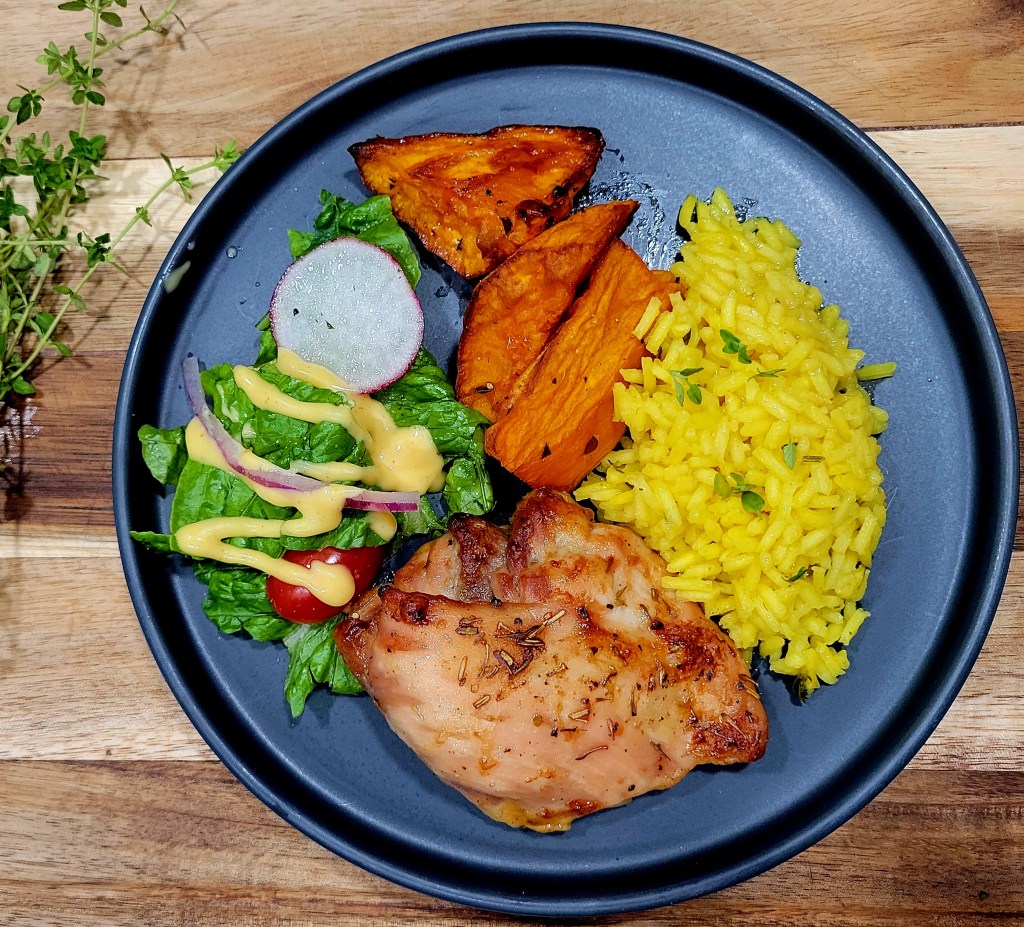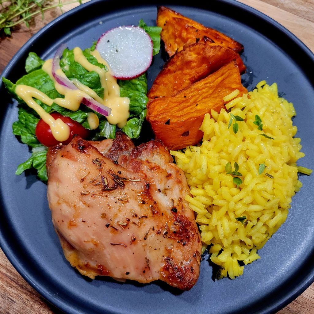4. Pour maple mustard mixture over the thighs, turning chicken so that it’s fully coated.