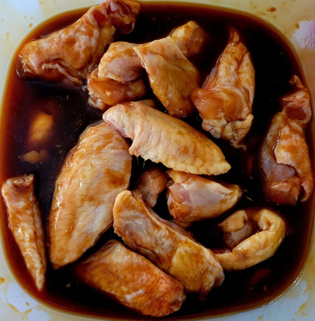 Arrange chicken wings in a container with a lid and pour marinade over the top of wings, turning to coat the wings. Cover and refrigerate overnight OR you can also put the wings into a gallon freezer bag and pour the marinade over them, seal up the bag, and refrigerate overnight.