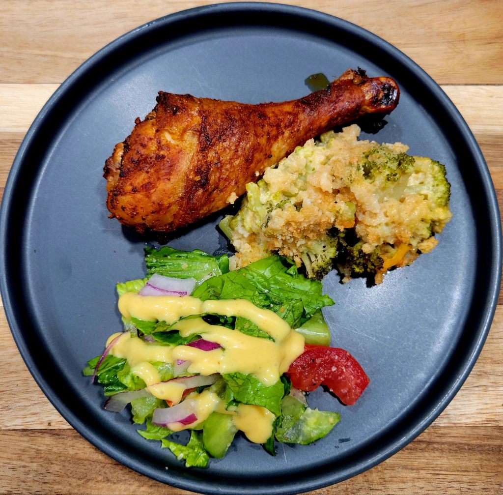 Served it with broccoli cheese casserole π₯¦π§ and a salad π₯