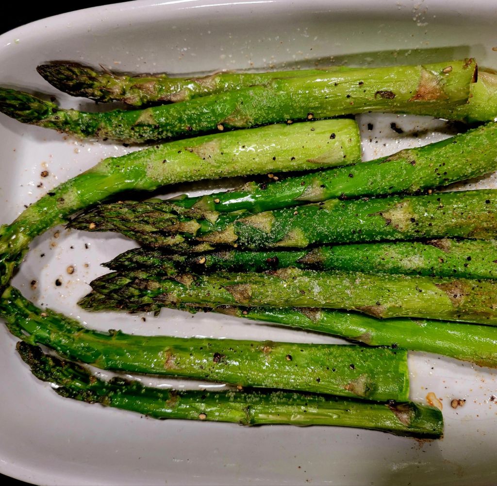 Here with corn, roasted asparagus, green goddess inspired salad. My granddaughter likes cajun seasoning on her corn 😉