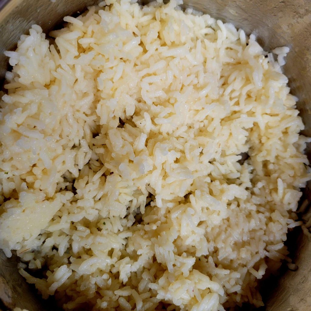Removed from refrigerator. Made rice (in chicken broth for a change). Set aside.