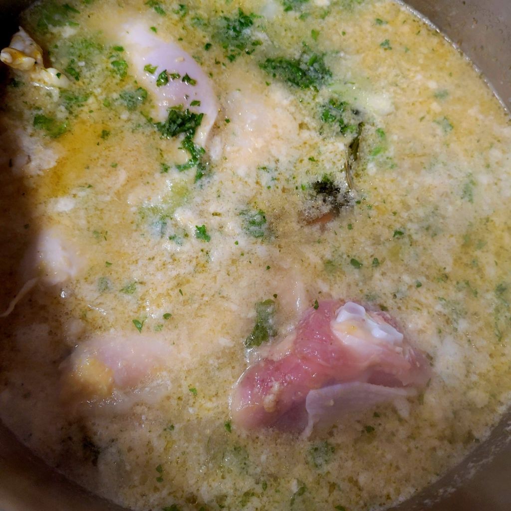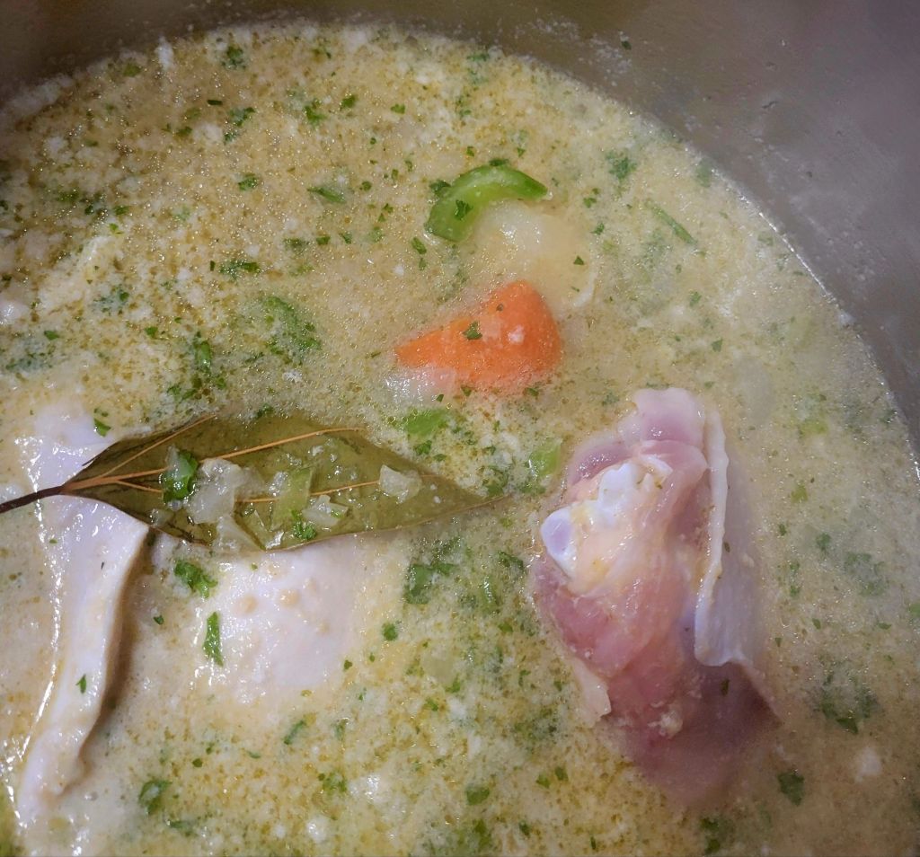 Because I cooked my chicken in broth, I had to skim foamy “stuff” off the top as it cooked, in the beginning 😉