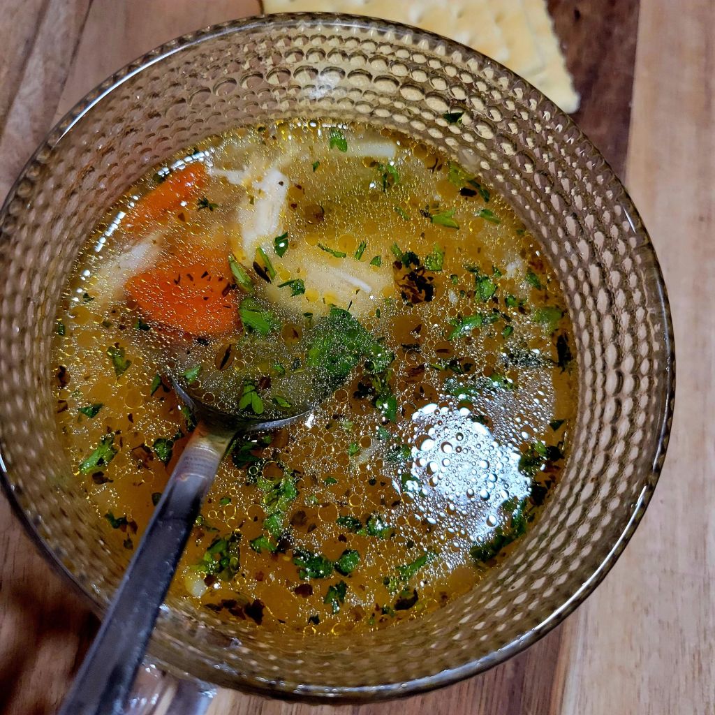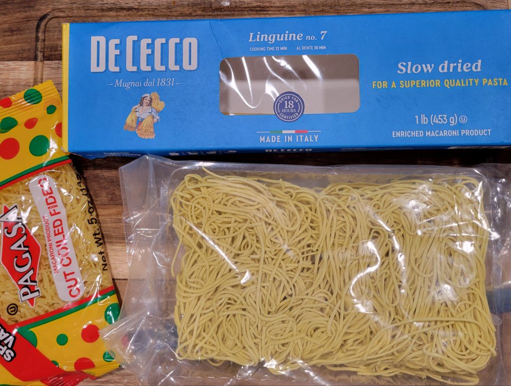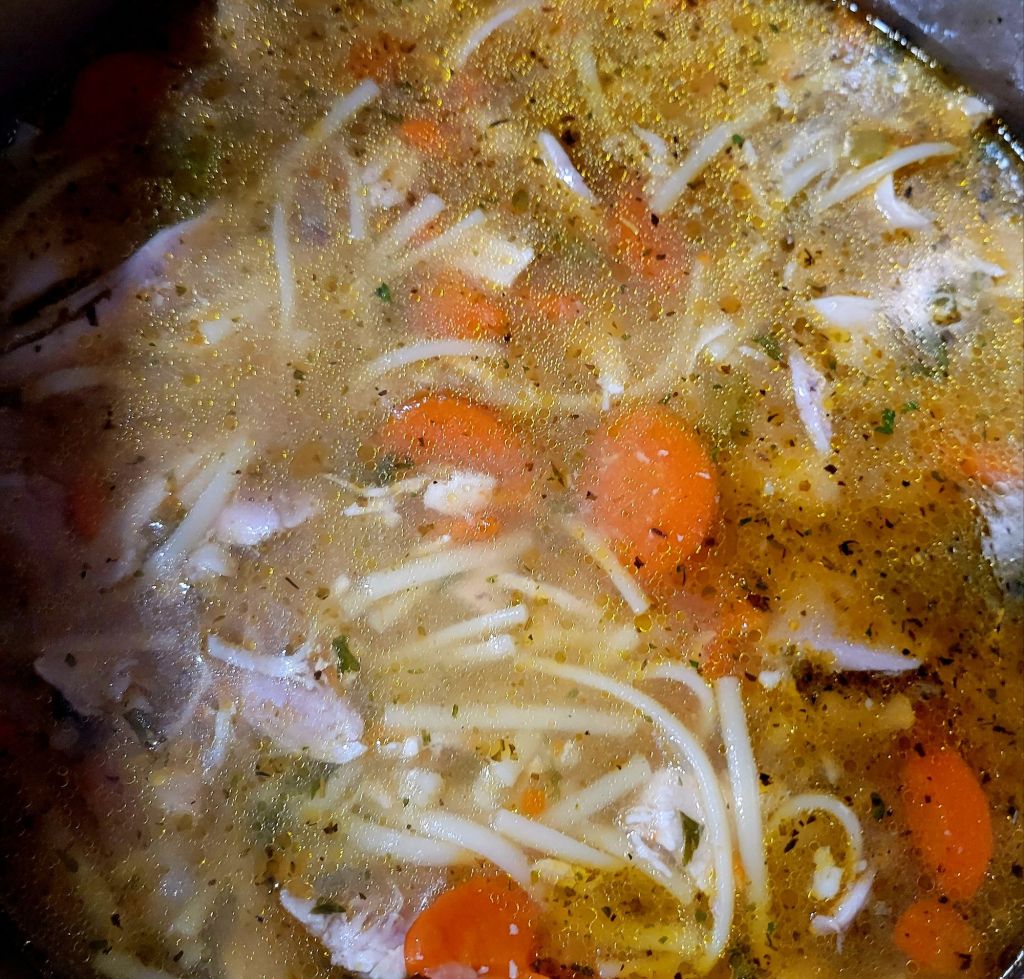 I had choices for noodles. But nobody was home to get a say or vote… or to sway me toward one over others. Fideo was just too small, but the Asian are VERY long 🤔 Sooo… went with linguini, broken into about 2 inches long. That was a better size than Fideo, and I just didn’t know how the Asian noodles would go over. I settled for the middle ground. And for anyone who wants to know, the linguini ends up the size noodles you get in Campbell’s Chicken Noodle Soup. THEN my granddaughter arrives and responds with “Oh! Grandma! Asian noodles would’ve been so GOOD!” 🙄 Next time 🤣 She still said it was delicious 😍
