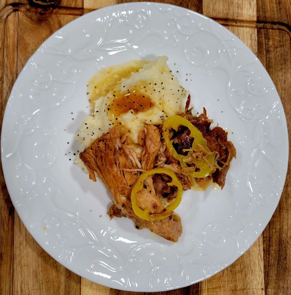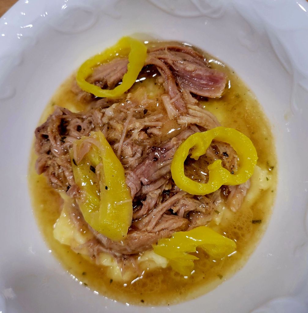 Followed recipe for Mississippi Roast, using pork roast instead of beef š served over mashed potatoes. ā¤µļø https://just2note.com/2021/02/12/mississippi-roast/