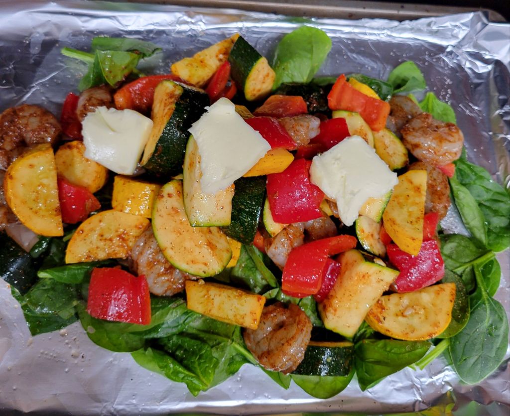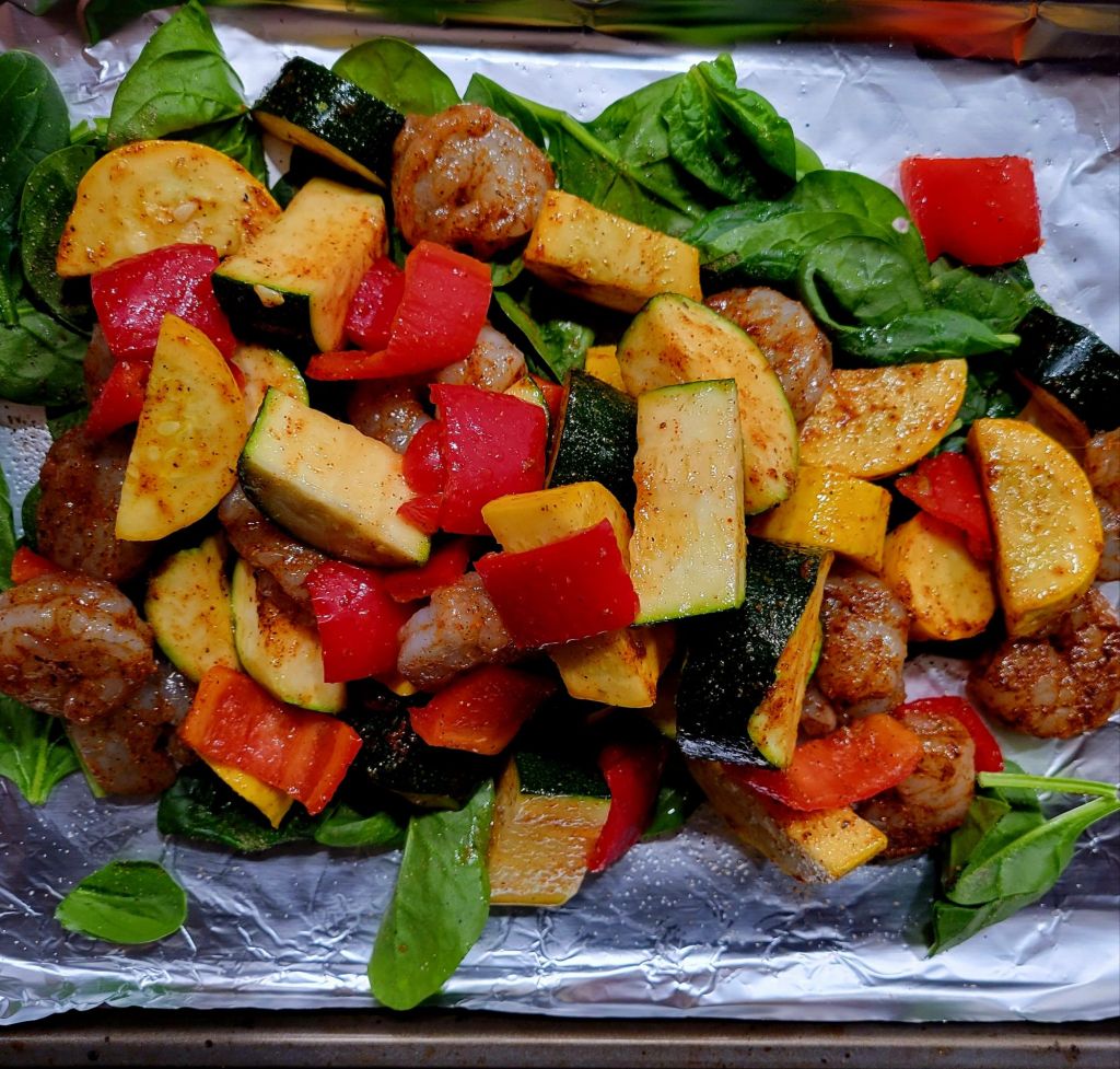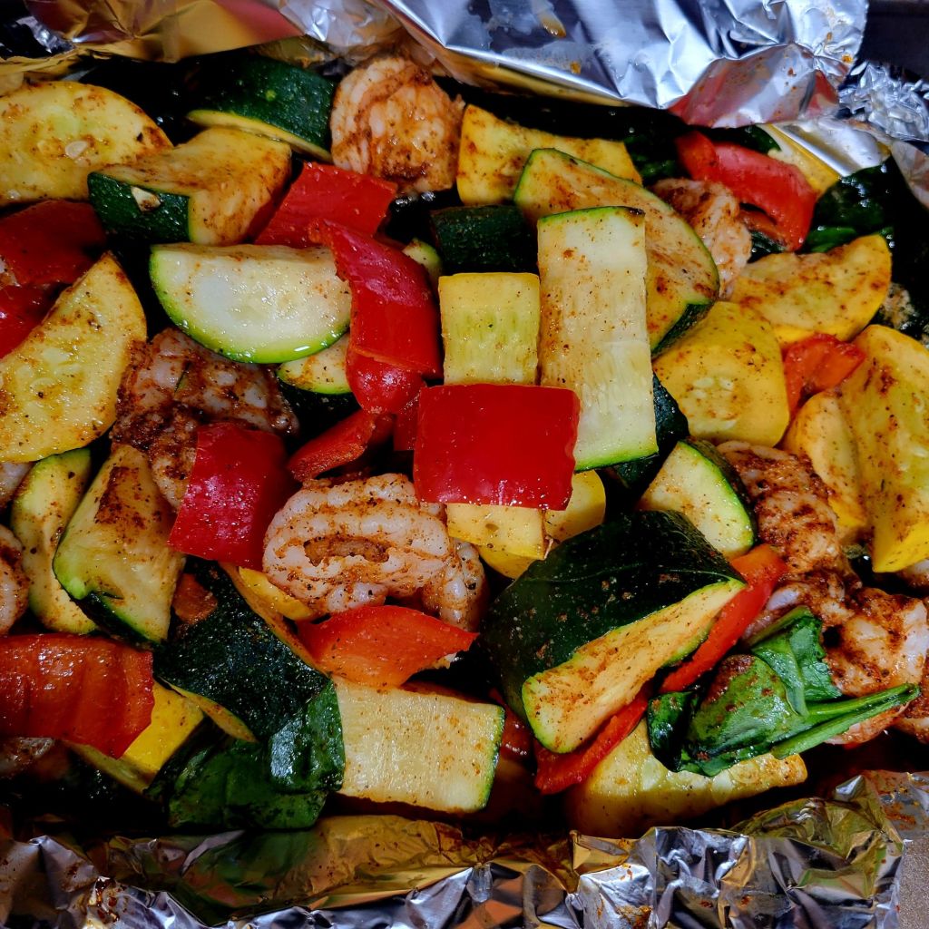 Actually, I turned mine into Chipotle Shrimp in Foil 😉 close 🤭 I followed the recipe at the link, basically. I used zucchini, yellow squash, and red peppers. My daughter wanted rice pilaf with it 😋 I made enough of everything for 4 people.