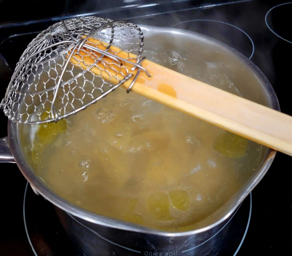 Bring a large pot of water to a boil. Once boiling, toss in the broken pasta pieces and cook the pasta until al dente—about four to five minutes. Drain and set aside.