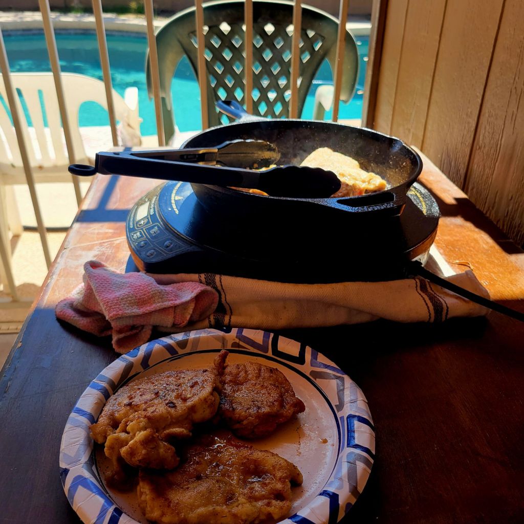 I fry or cook messy stuff outdoors 😜 Then the rest indoors. I try to avoid grease splatter inside 🫠