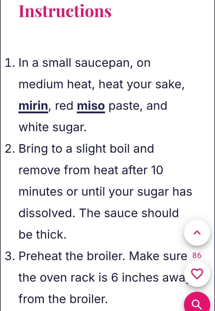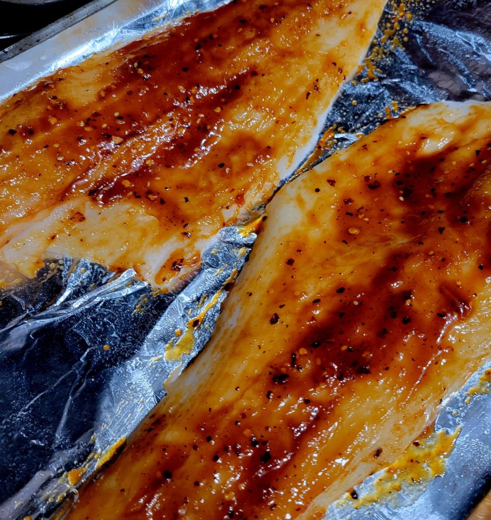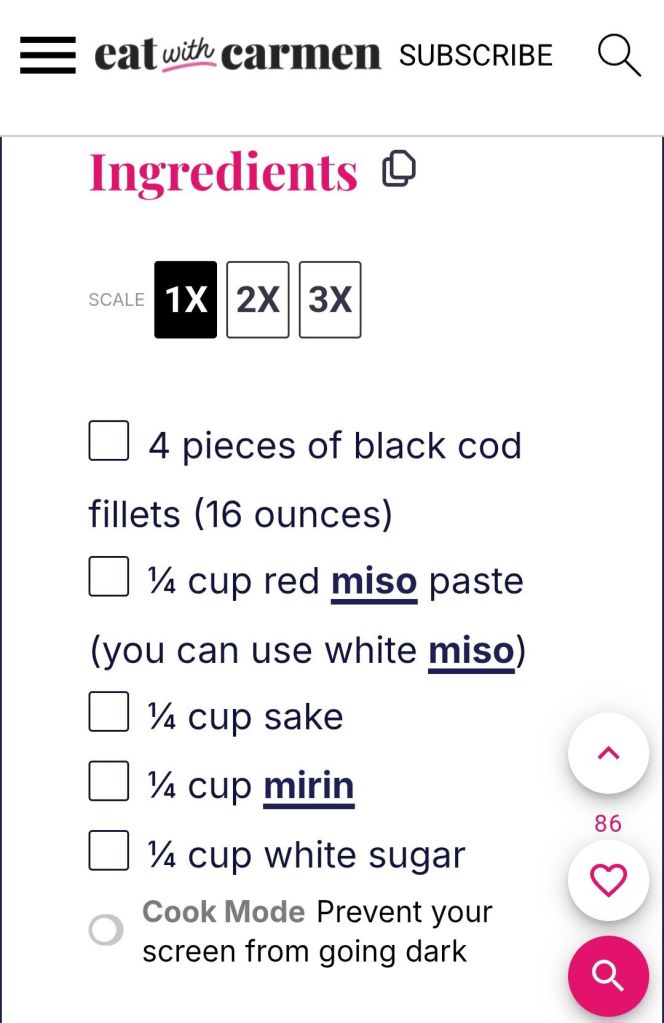 I know, I’ve posted miso glazed cod before, but this is a different recipe. It turned out great! ๐ I adapted it from Eat with Carmen Miso Glazed Black Cod ๐ I did add a splash of Tamari and a splash of sesame oil. And ๐คญ my family likes everything spicy… so I also added some crunchy chili oil. Momofuku Chili Crunch ๐