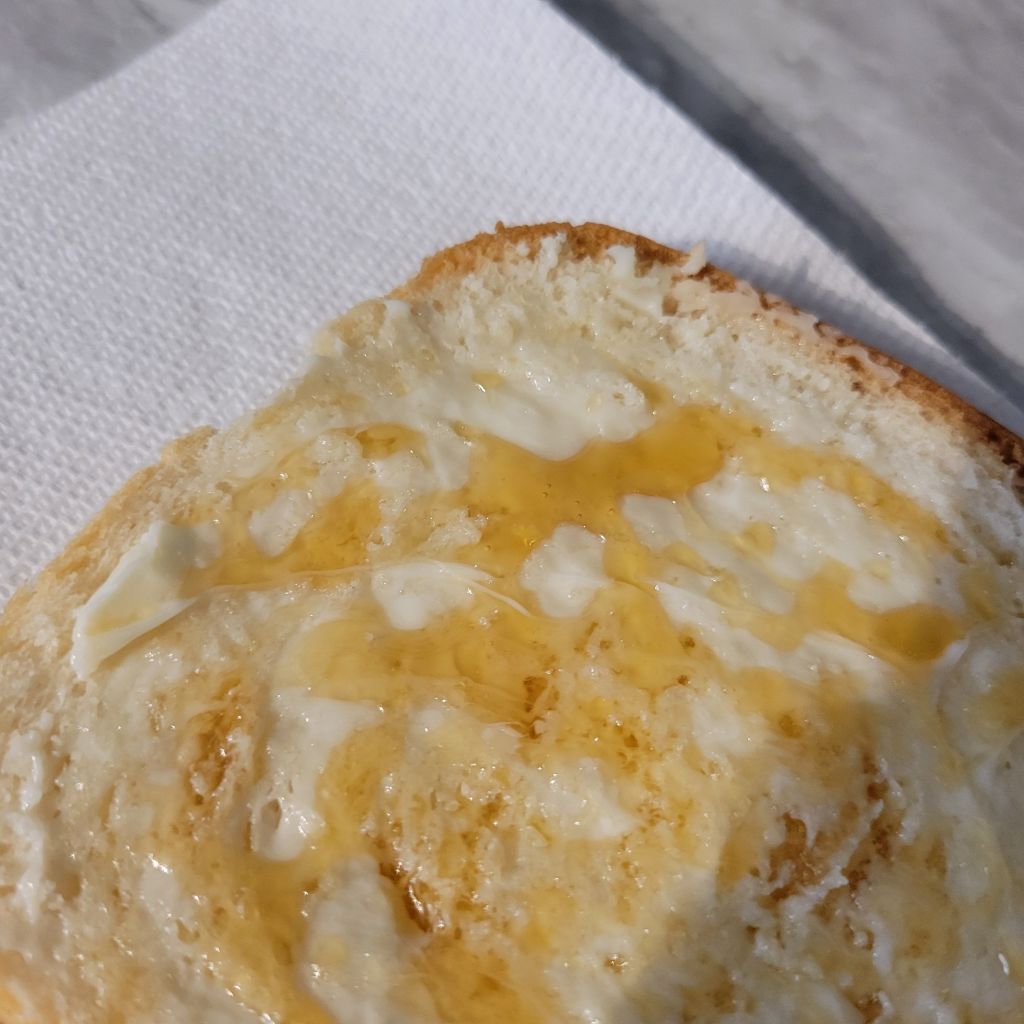 My daughter couldn’t wait, grabbed a slice, put butter and honey on it ππ§π― π