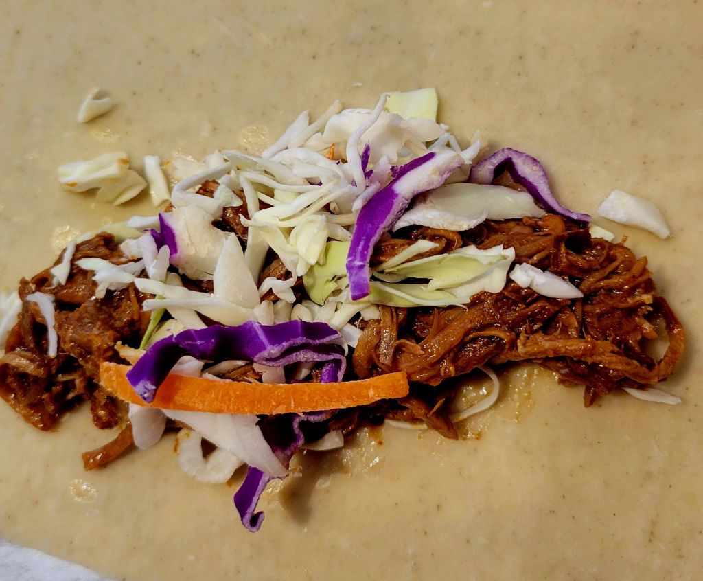 Another time, I used mojo shredded pork with coleslaw slaw mix. Was delicious 😋 pics below.