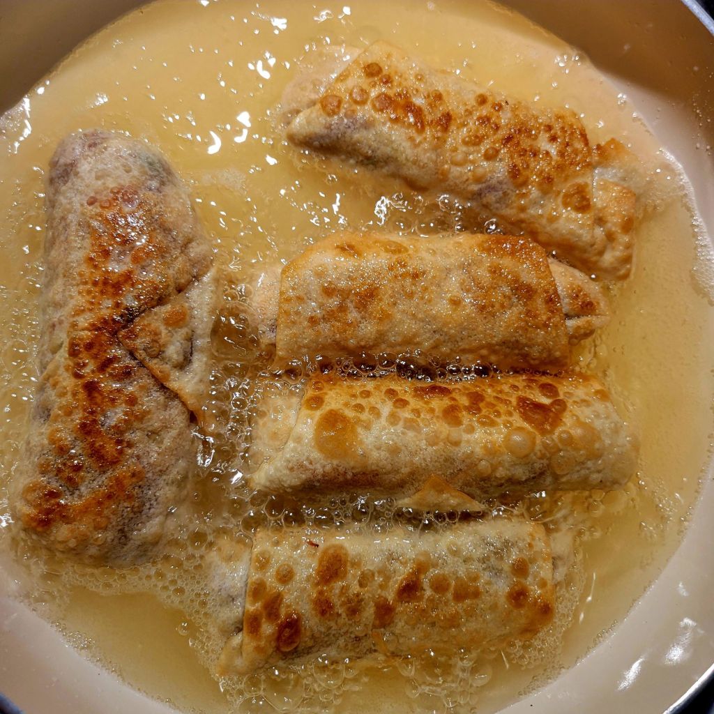 Fry in med/high hot oil, tuning until golden brown, transfer to paper towel lined plate or cooling rack. Serve with sweet chili sauce for dipping, or sweet & sour sauce, or duck sauce. For air fryer, go to the link above.